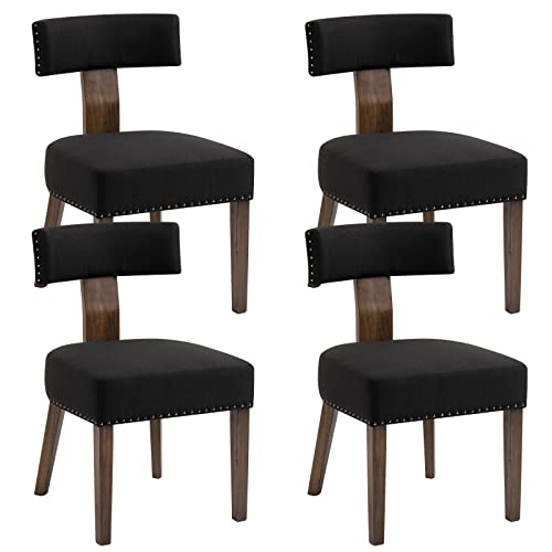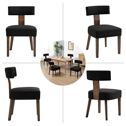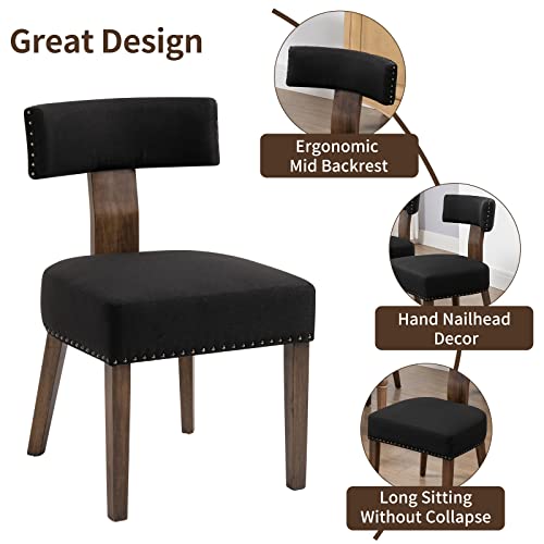 Upholstered Wooden Farmhouse Dining Chairs Set of 2, Mid-Century Modern Fabric Dining Room Chairs with Wood Legs, Curved Backrest Kitchen Chairs Armless Accent Chairs for Living Room, Beige