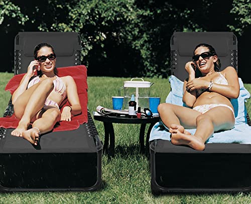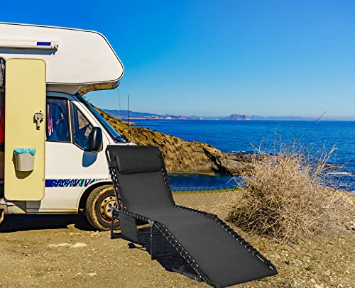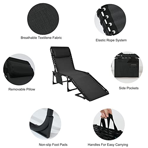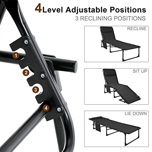 Folding Chaise Lounge Chair with Pillow and Pocket, 3 Reclining Positions for Patio, Lawn, Beach, Pool, Camping- Blue, 280lbs