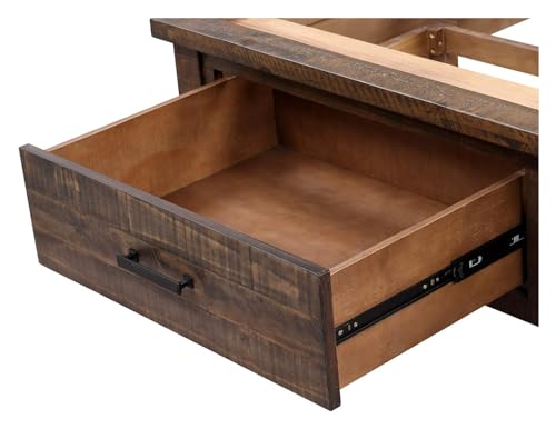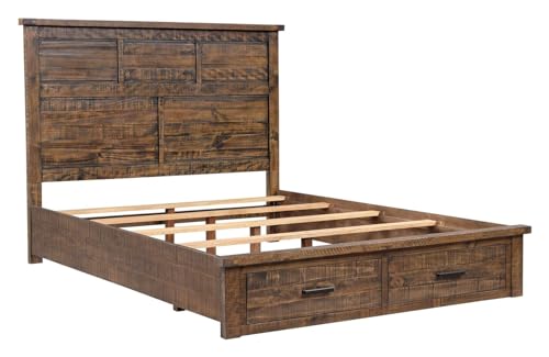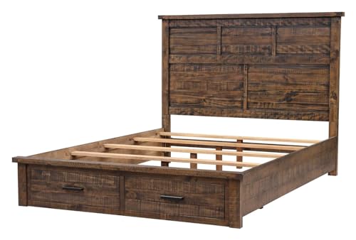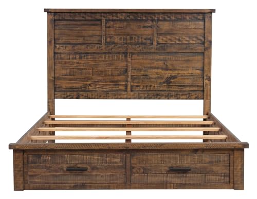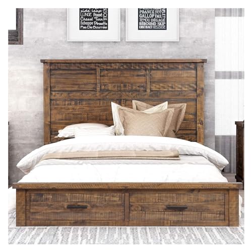 Solid Queen Bed Frame with 2 Storage Drawers, Queen Size Platform Bed Frame with High Headboard, Queen Bed with Wooden Support Legs Compatible with Teens Adults, Natural Bedroom Bed Frame,