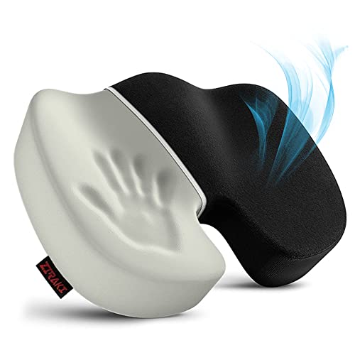 Seat Cushion Pillow - Orthopedic Design - 100% Memory Foam Supports & Protects Sciatica, Coccyx, Tailbone Pain Back Support -Ideal for Home Office Chair, or Car Driver (Grey Cushion with Cool Gel)