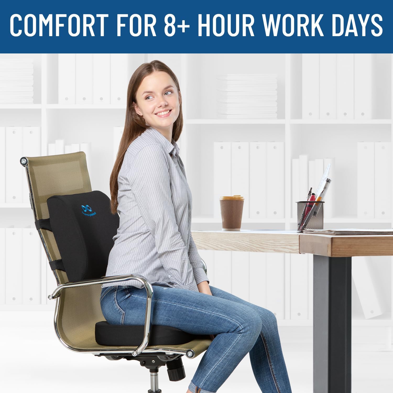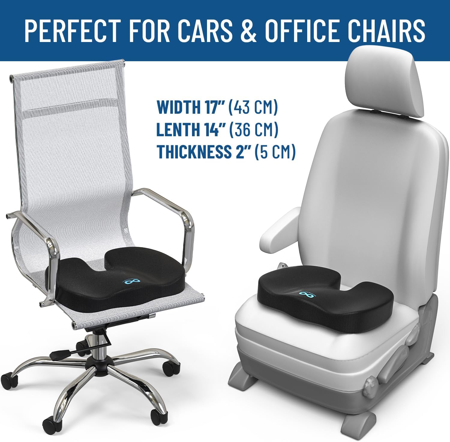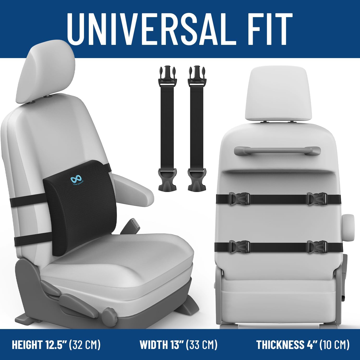 Everlasting Comfort Gel Infused Memory Foam Car Seat Cushion & Lumbar Pillow Combo for Tailbone Pain, Sciatica, Sitting Fatigue - Booster Seat for Adults - Ergonomic Car Seat Cushions for Driving