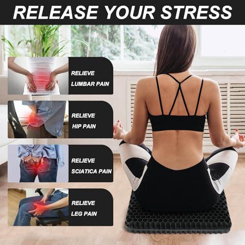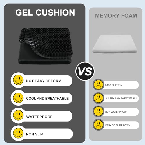 Gel Seat Cushion, Cooling seat Cushion Thick Big Breathable Honeycomb Design Absorbs Pressure Points Seat Cushion with Non-Slip Cover Gel Cushion for Office Chair Home Cars Wheelchair