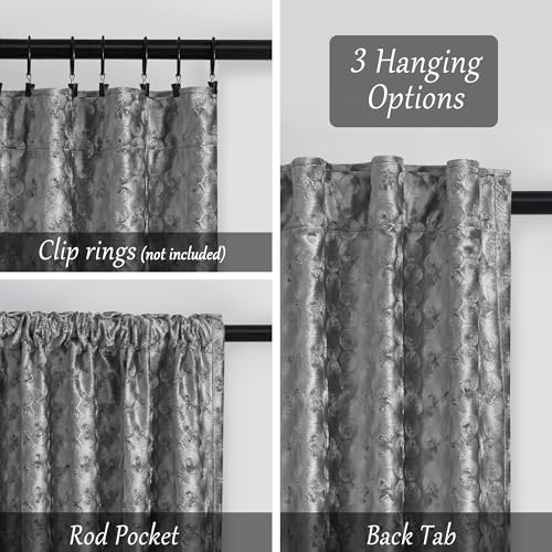 GIGIZAZA Velvet Curtains 96 Inches Long for Modern Living Room, Set of 2 Window Panels Light Grey Back Tab Window Drapes Dot Jacquard Luxury Home decor Curtain Drapes