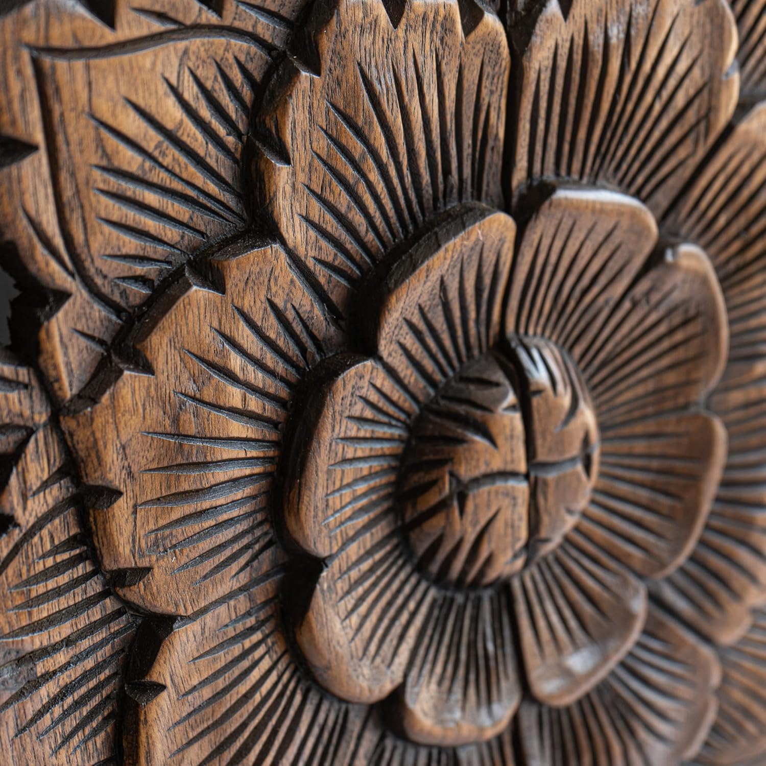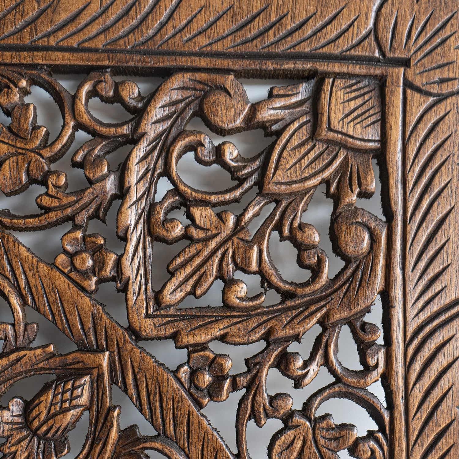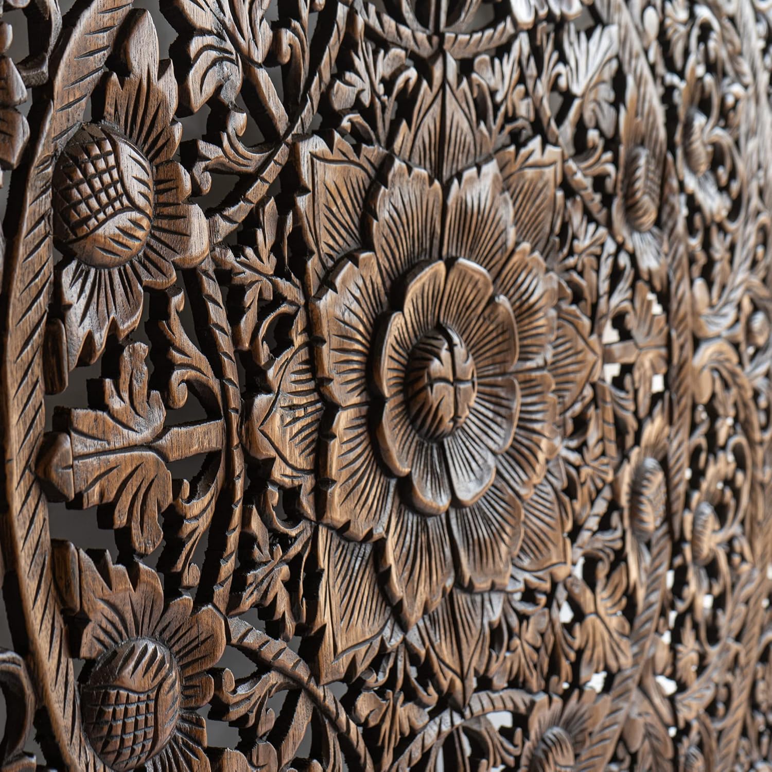 Dark Wood Wall Art Hanging, Twin Bed Headboard in Teak, Handcrafted Eco-Friendly Sculpture from Thailand, 48 inches