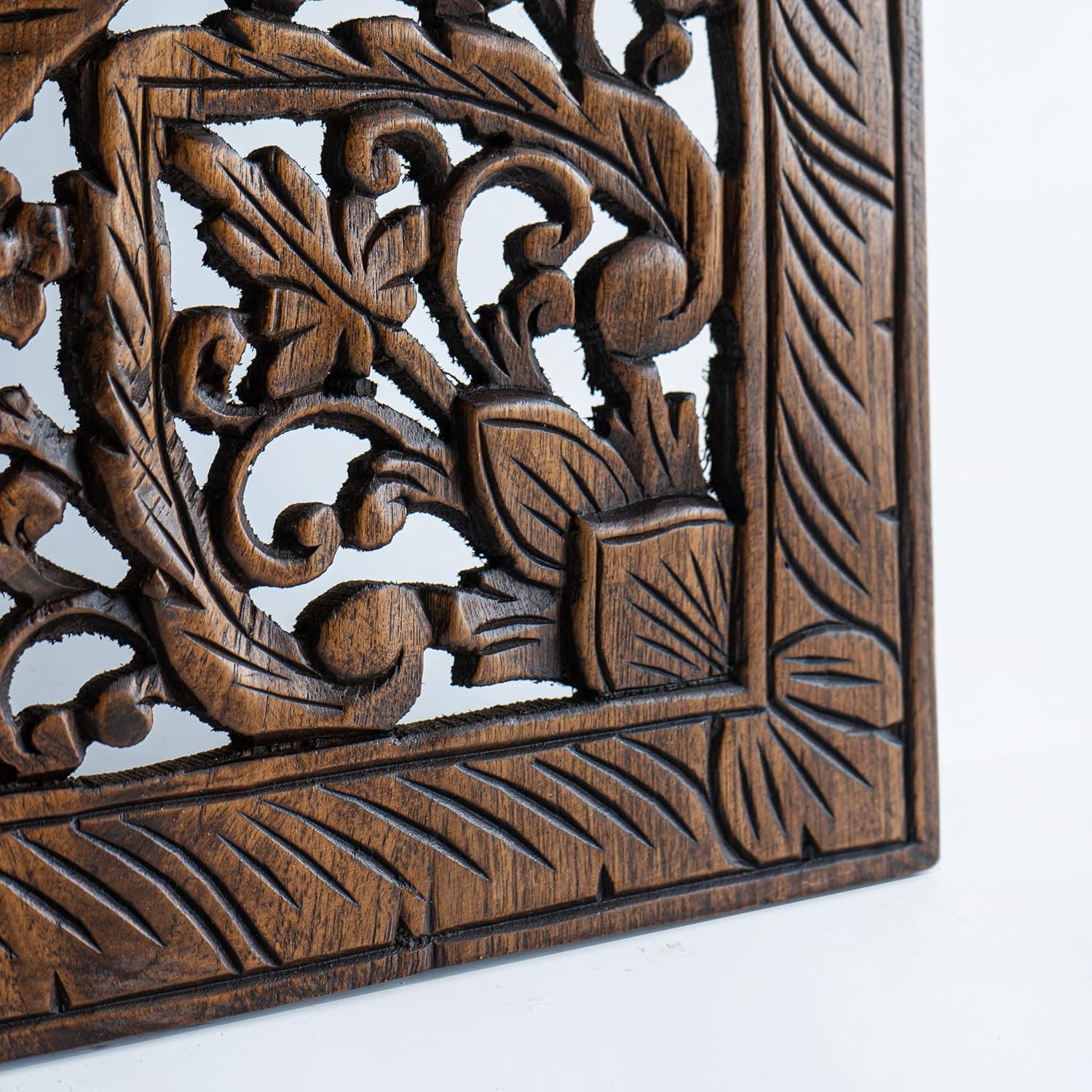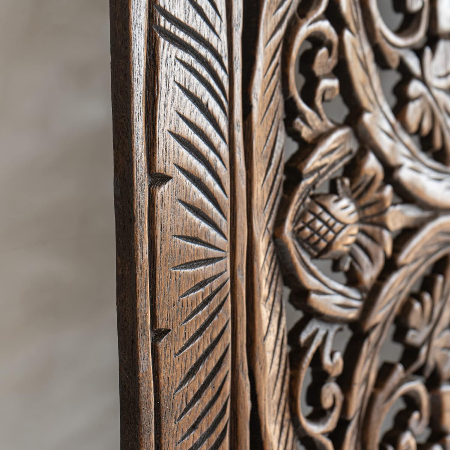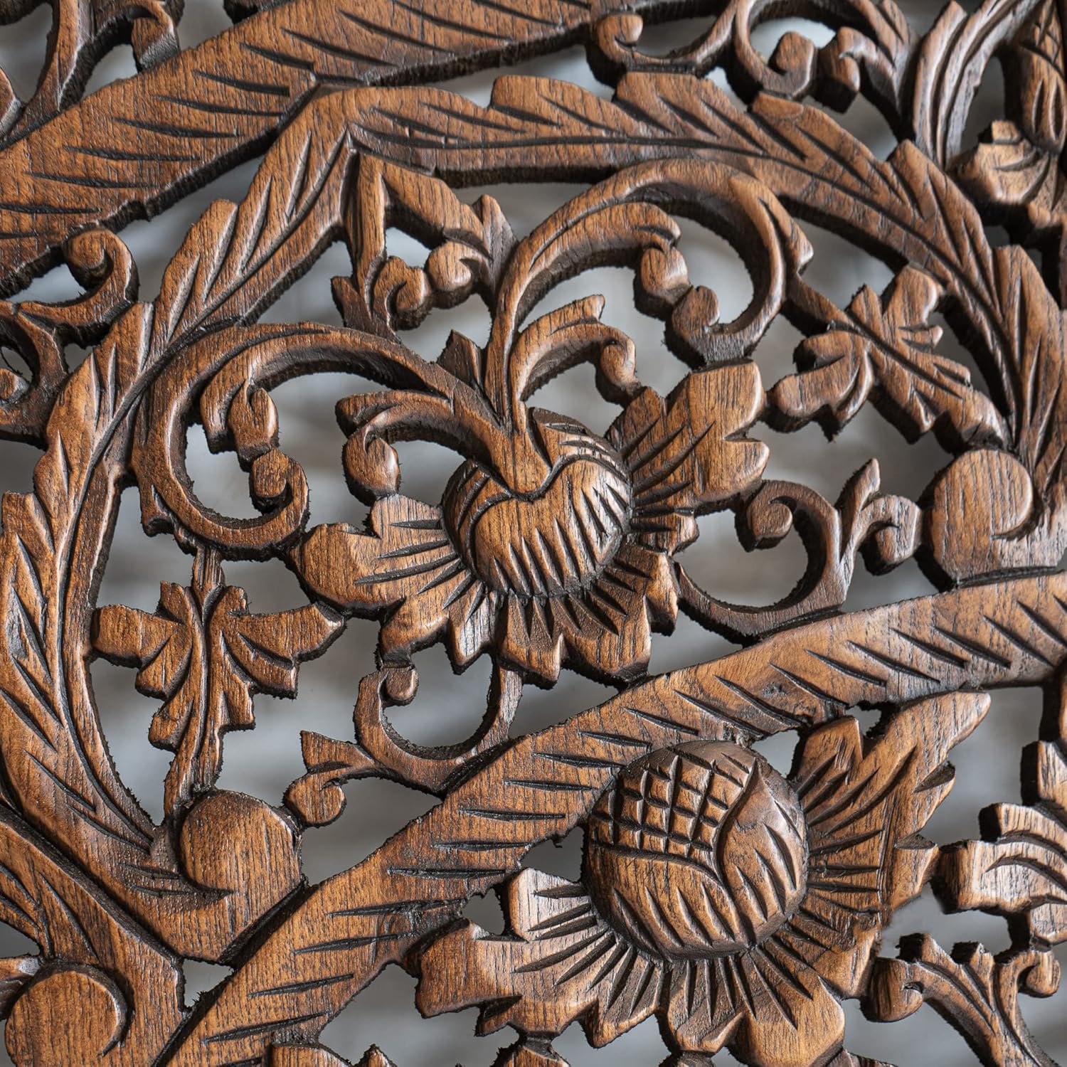 Dark Wood Wall Art Hanging, Twin Bed Headboard in Teak, Handcrafted Eco-Friendly Sculpture from Thailand, 48 inches