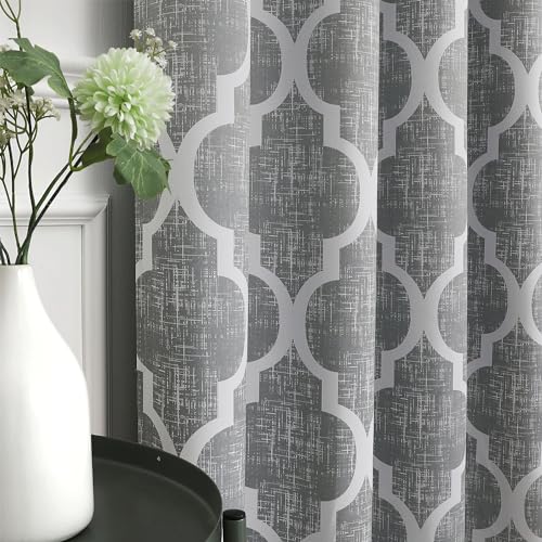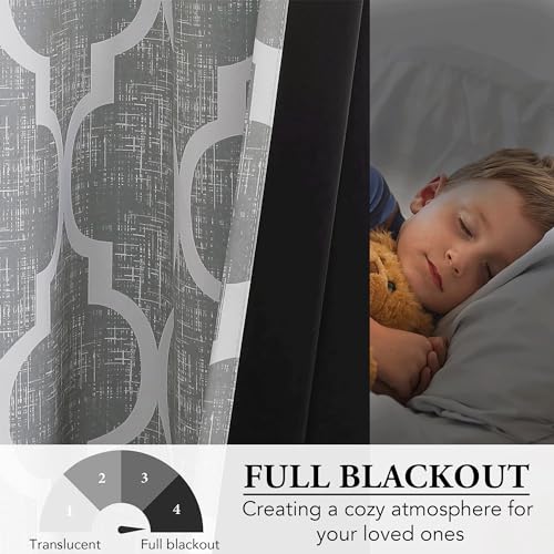 Beauoop 100% Blackout Curtains 96 Inches Long 2 Panels for Bedroom Living Room Blue Grey Moroccan Geo Room Darkening Thermal Insulated Soundproof Grommet Top Window Treatments Drapes, 50x96 Set of 2