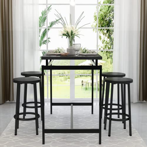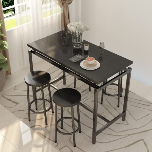 AWQM Bar Table Set, Dining Table Set for 4, High Top Kitchen Table and Chairs for 4, Rectangle Bar Table with 4 Round Stools for Breakfast Nook, Kitchen, Dining Room, Restaurant - Rustic Brown