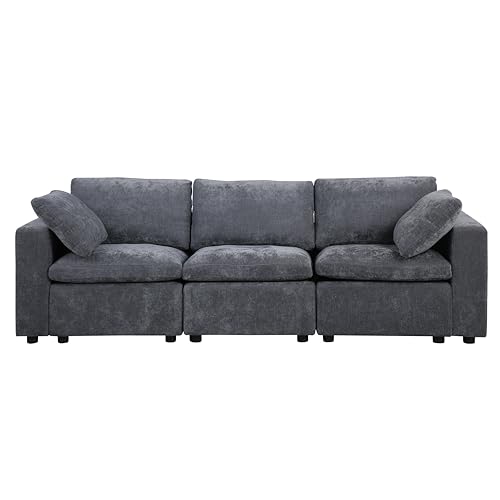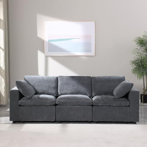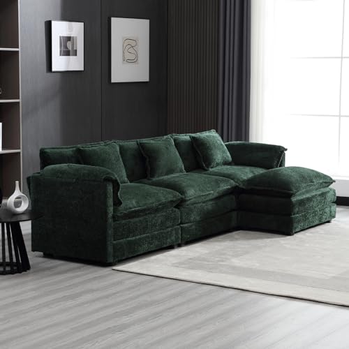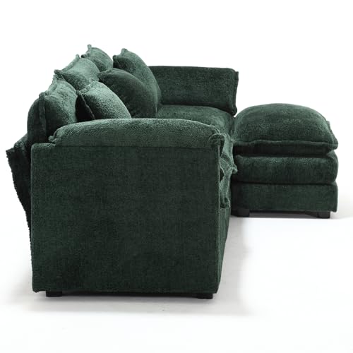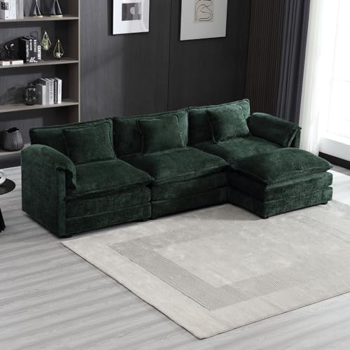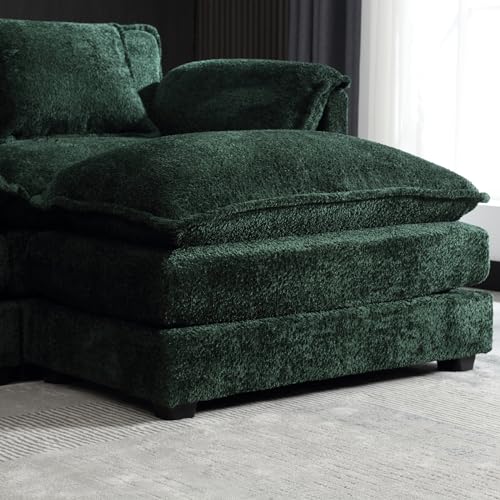 Deep Seat Oversized Sectional Sofa,127" L Shaped Cloud Couch for Living Room,Modern Chenille Comfy Modular Sleeper Sofa,Upholstered 3 Seater Sofa with Ottoman