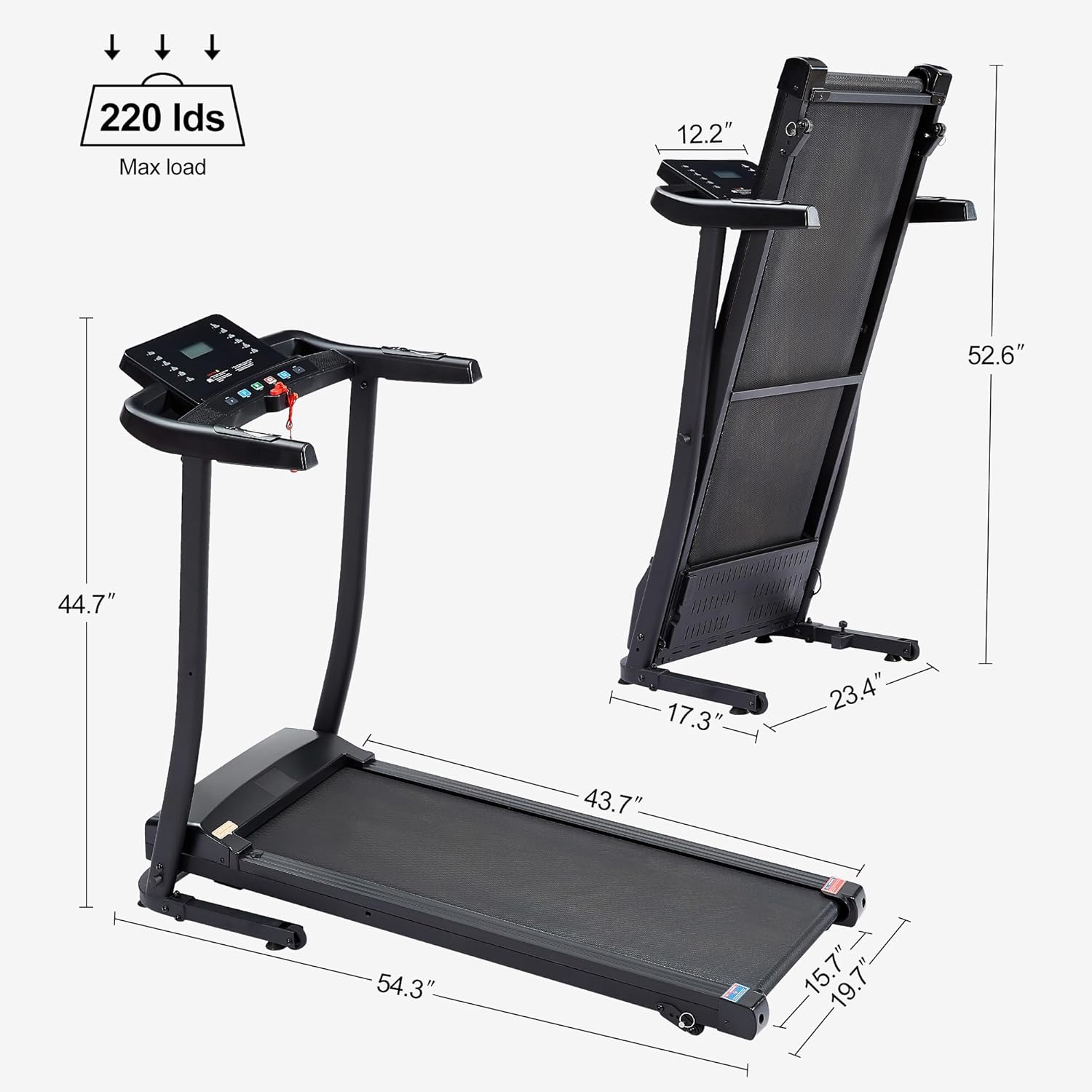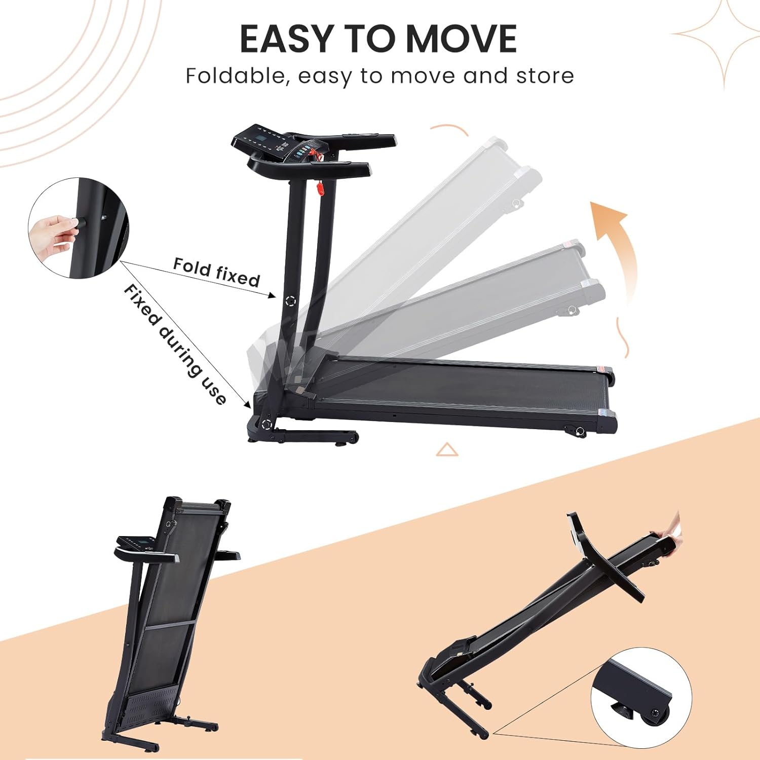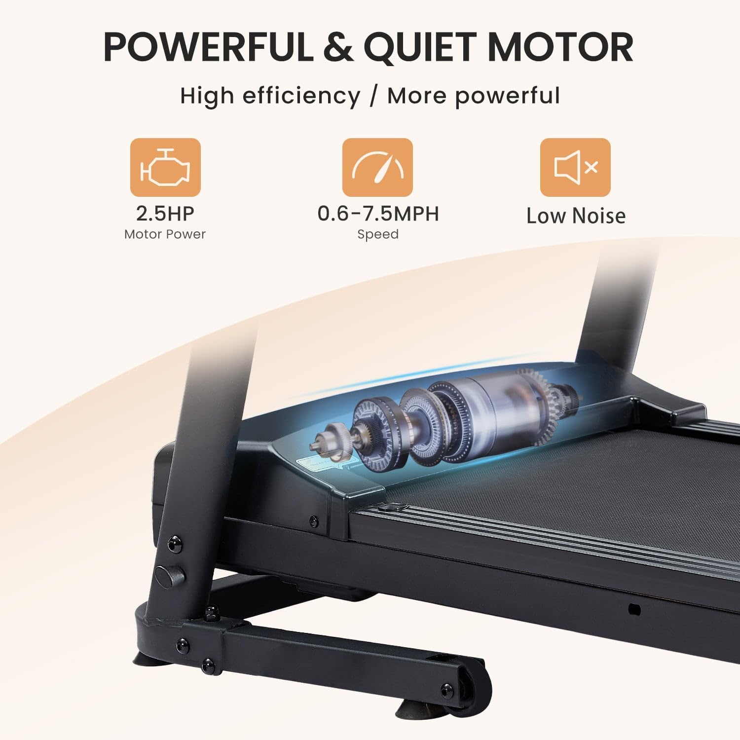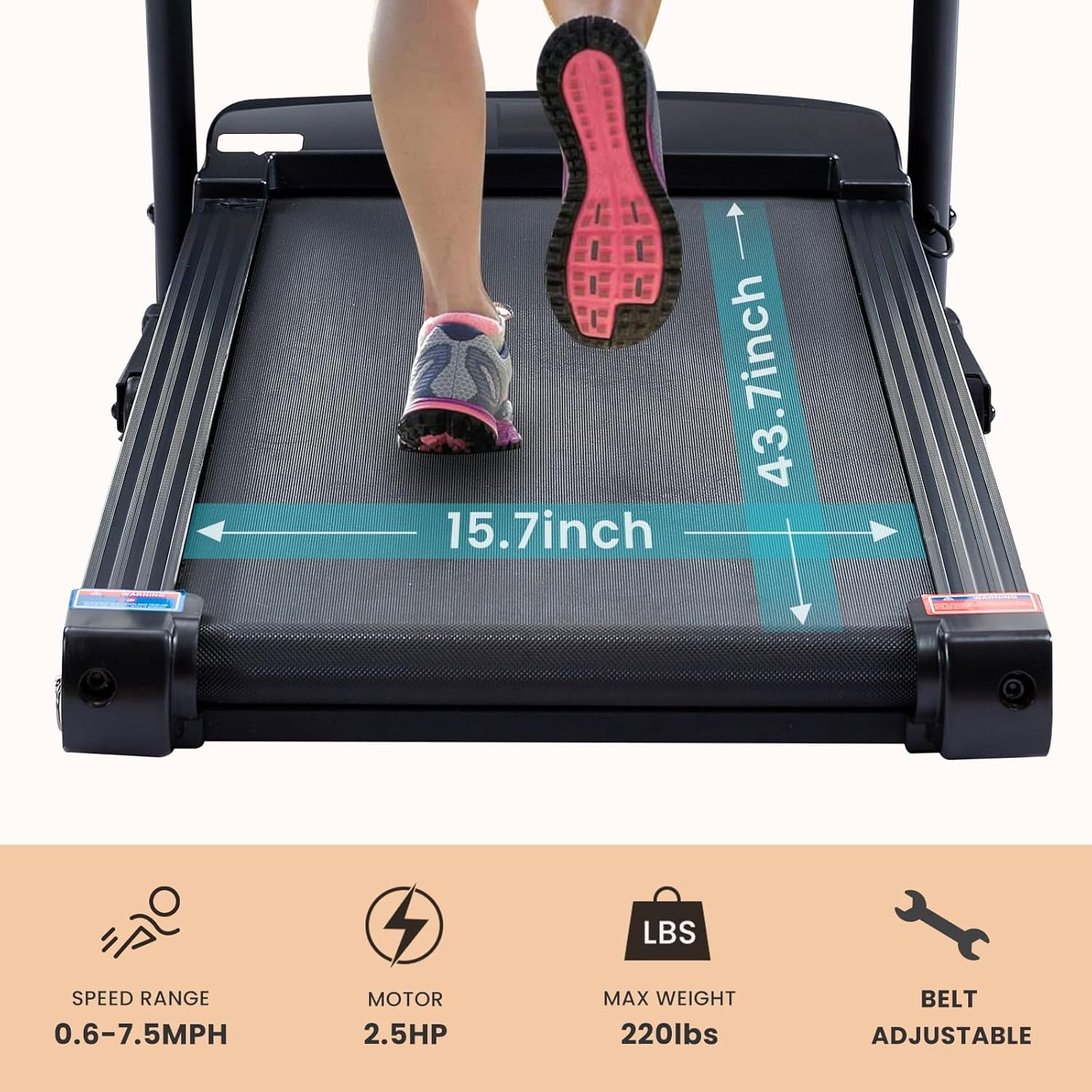 Treadmill - 2.5 HP folding treadmill, easy to move, with 3-speed incline adjustment and 12 preset programs, 3 countdown modes, heart rate, Bluetooth, etc., suitable for home and gym use