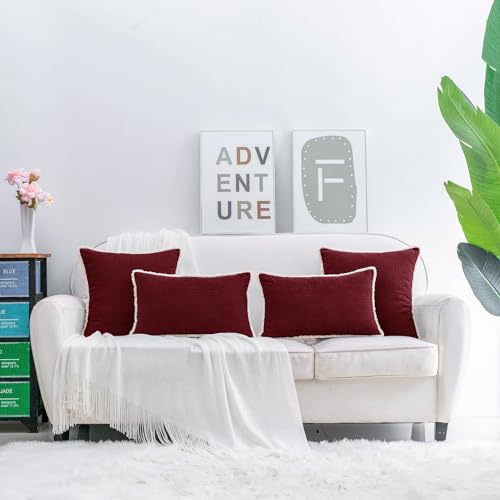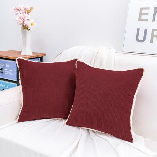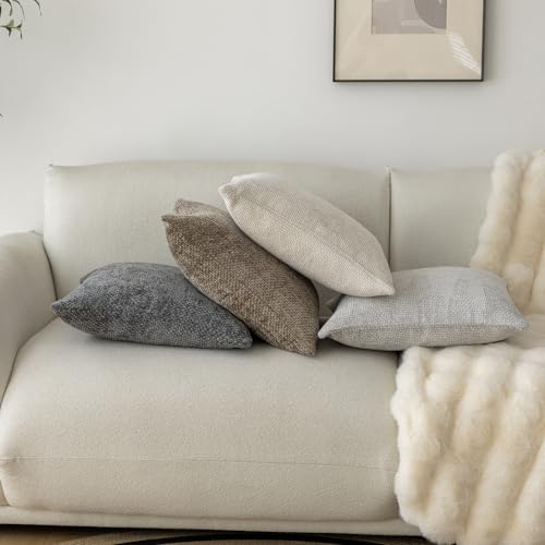 LANANAS Neutral Decorative Throw Pillow Covers 18x18 Inch for Living Room Couch Bed Sofa Farmhouse Boho Home Decor Set of 4 Soft Corduroy Accent Luxury Cushion Cases (18x18, Neutral Cream-Grey)