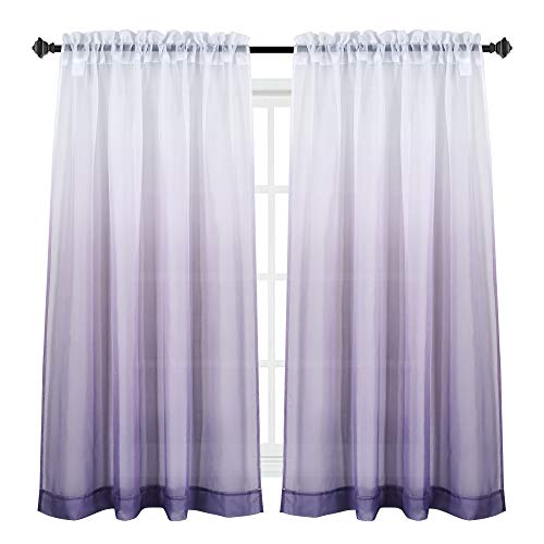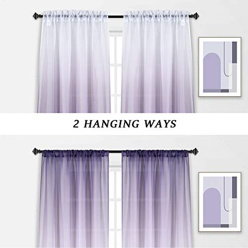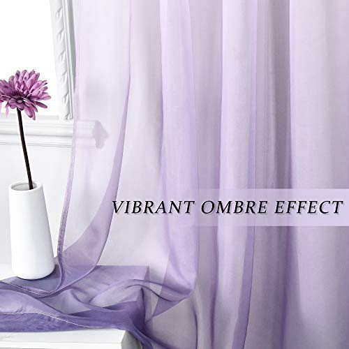 HUTO Grey Ombre Curtain Light Grey Sheer Curtain Modern Gradient Window Panel Voiles for Living Room/Bedroom 84 inch Set of 1