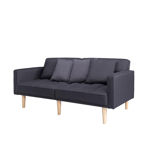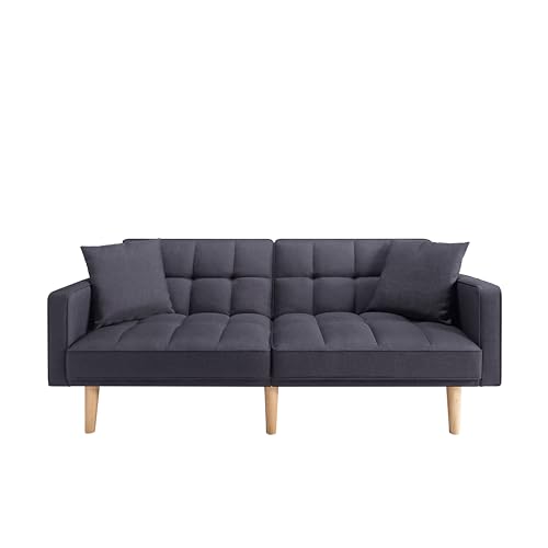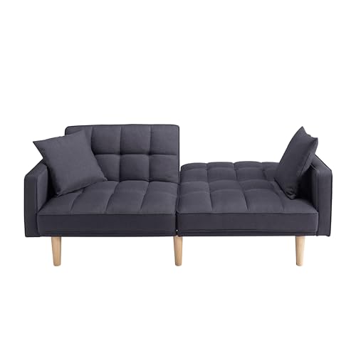 Tufted Futon Sofa Bed, Sleeper Couch, Modern Folding Loveseat Convertible Recliner Lounge with Wooden Legs for Living Room,Office,Apartment, 71.5", Dark Grey
