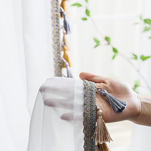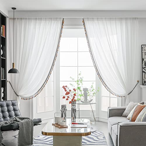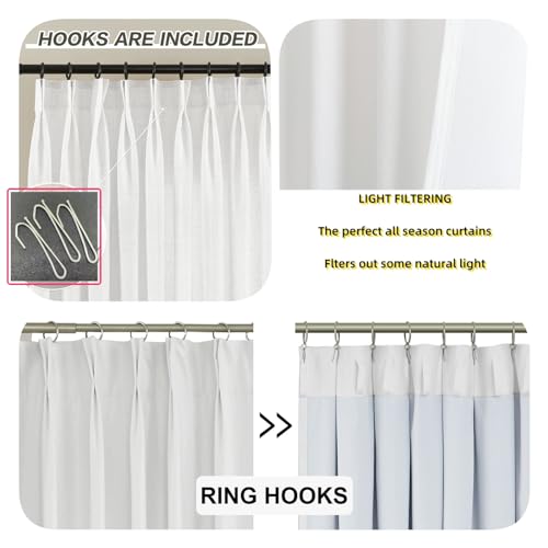 VisionaryHomeDesign White Sheer Curtains Pinch Pleated Sheers with lights Embroidered curtain Sheer for Living Room Bedroom (Set of 2) (45" W x 96" L)
