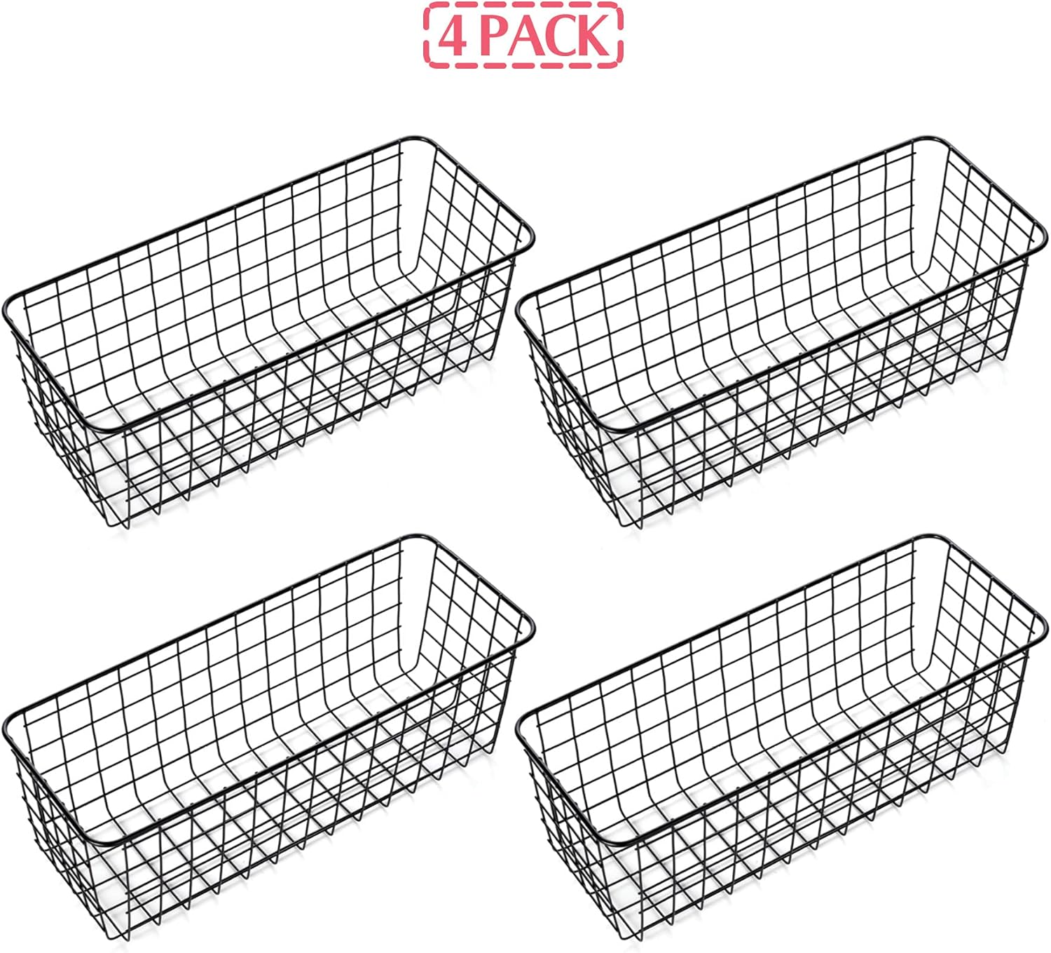 4 Pack Wire Storage Baskets Household Metal Wall-Mounted Containers Organizer Bins for Kitchen Bathroom Freezer Pantry Closet Laundry Room Cabinets Garage Shelf, Large