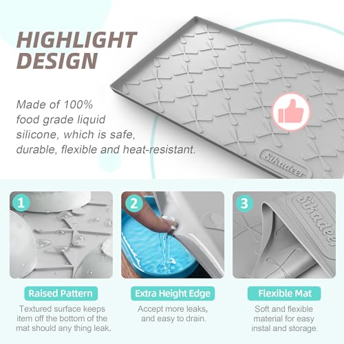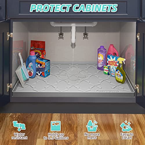 Under Sink Mat for Kitchen Waterproof, 25" x 22" Silicone Mat Cabinet Liner for Bathroom Under Sink Organizer with Raised Edge, Fits 27inch Standard Cabinet Under Sink Drip Tray Protector