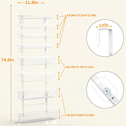 Moforoco Over The Door Pantry Organizer, Pantry Door Organizer Shelves, Kitchen Organizers and Storage, Hanging Basket Wall Spice Rack Seasoning Shelves, Laundry Room Bathroom accessories(White