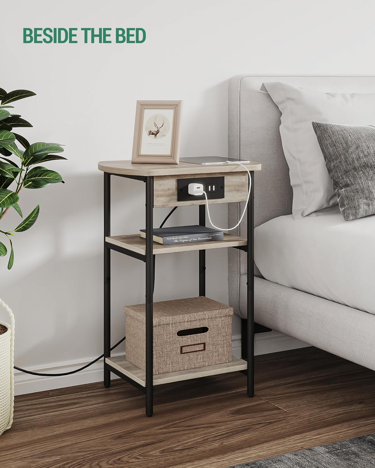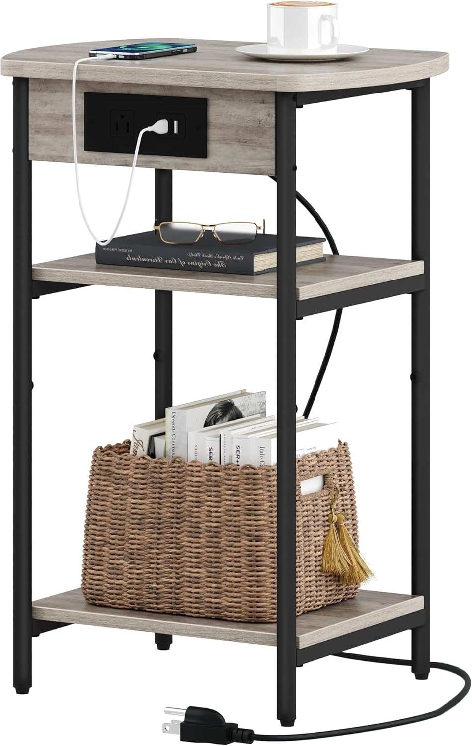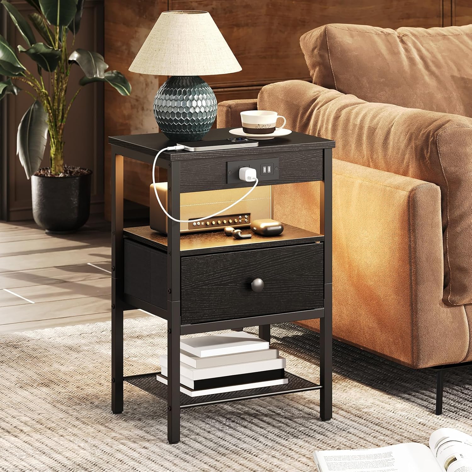 End Table with Charging Station ET05205B, Printer Stand with Charging Station