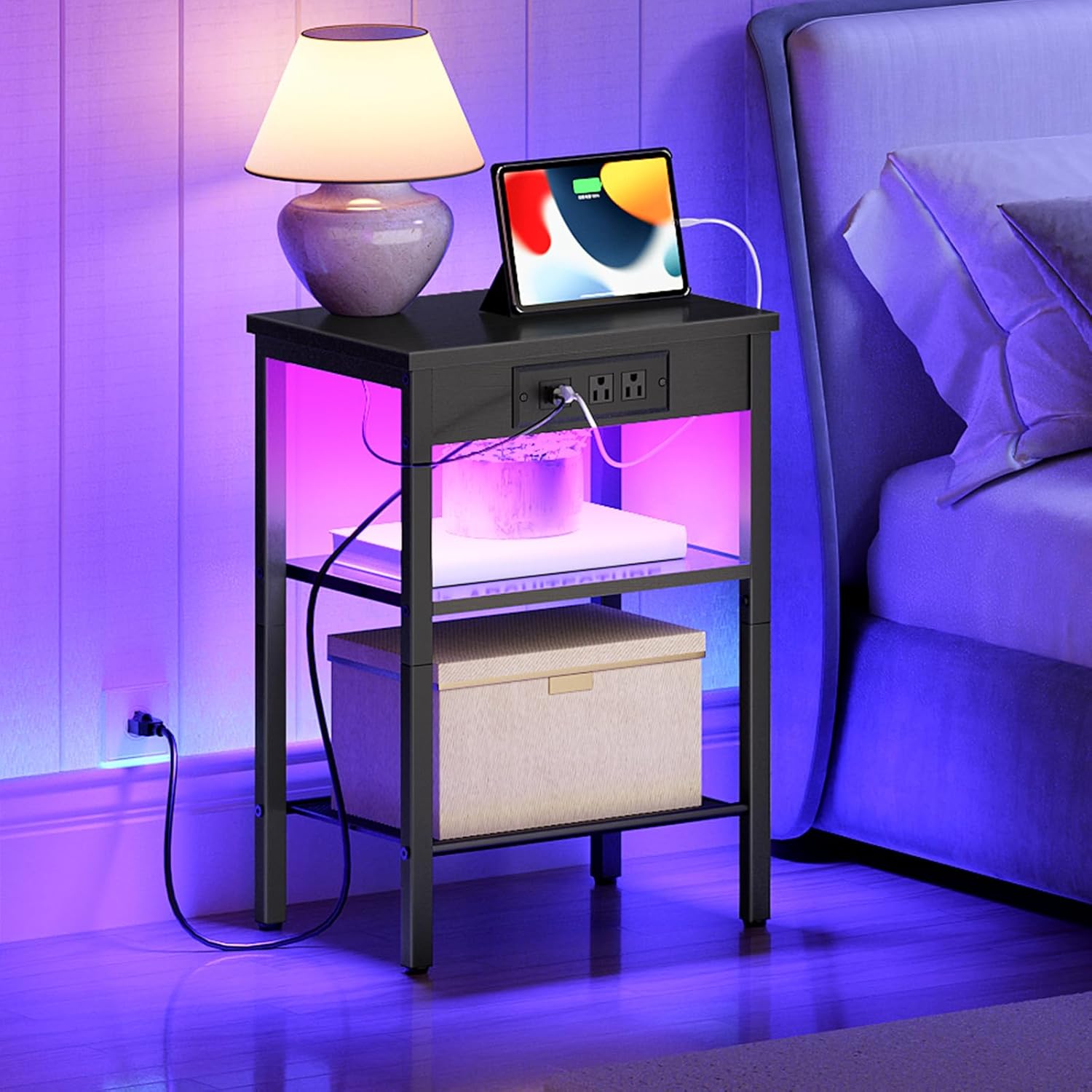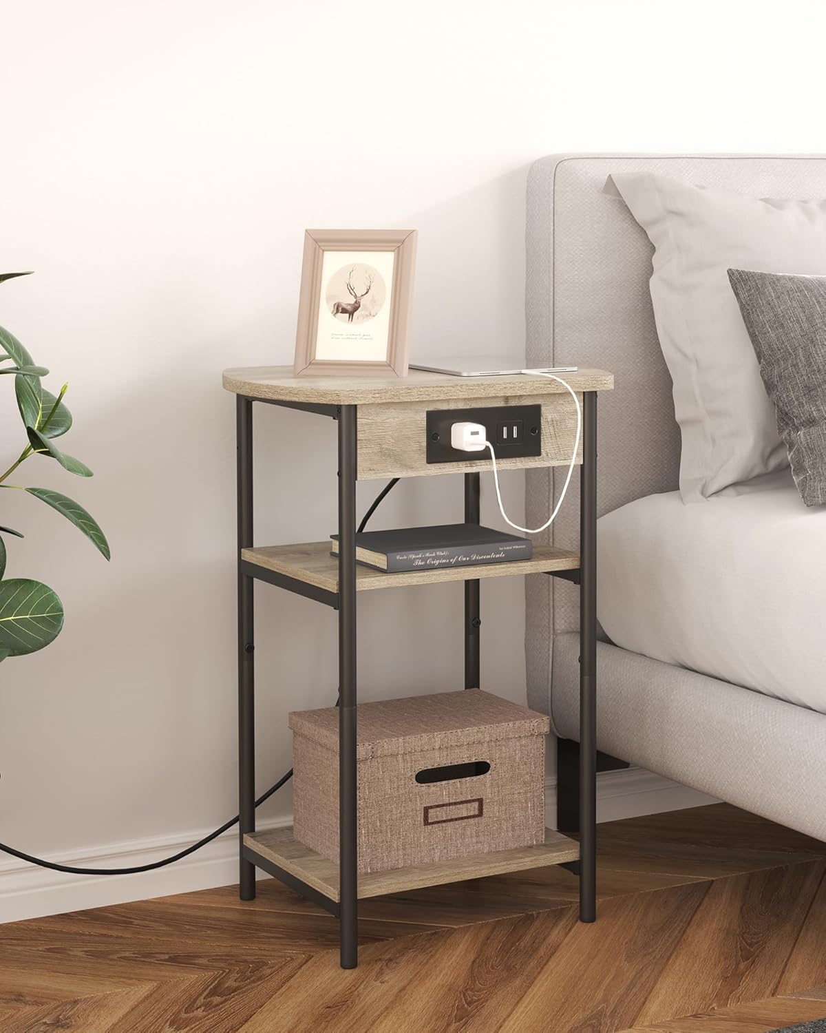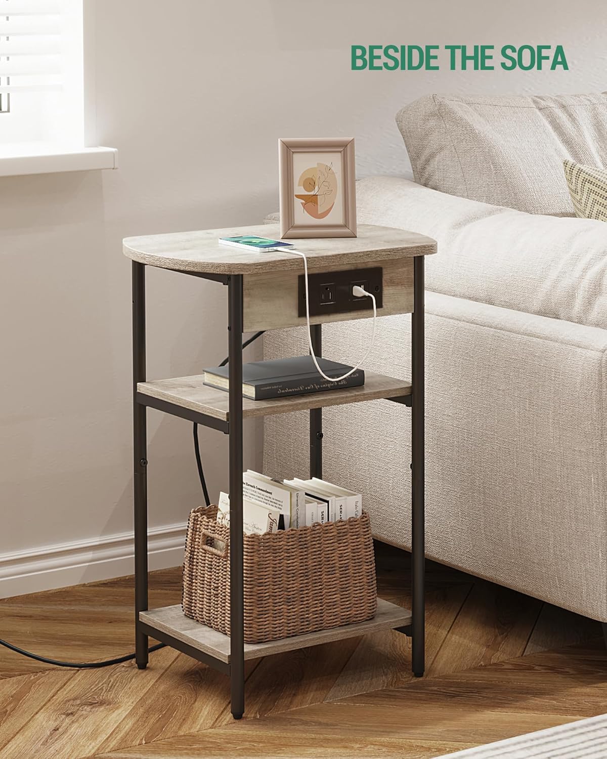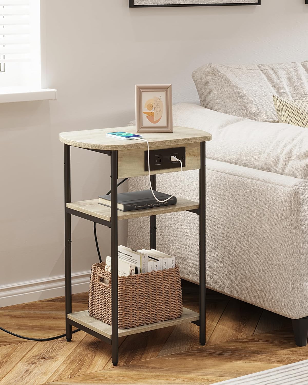 End Table with Charging Station ET05205B, Printer Stand with Charging Station