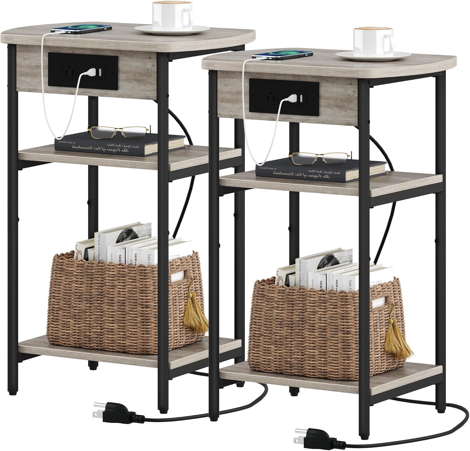 End Tables with Charging Station ET15205B, Printer Stand with Charging Station
