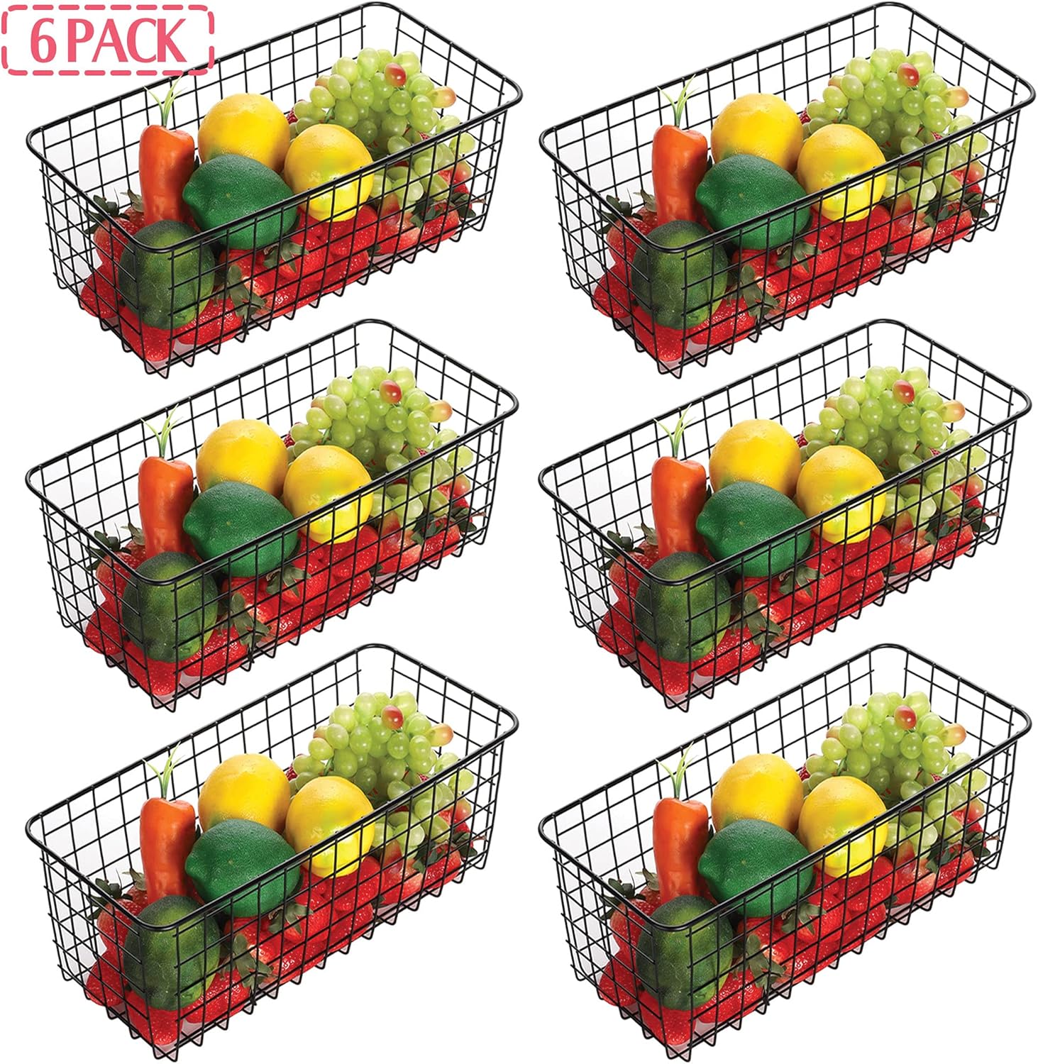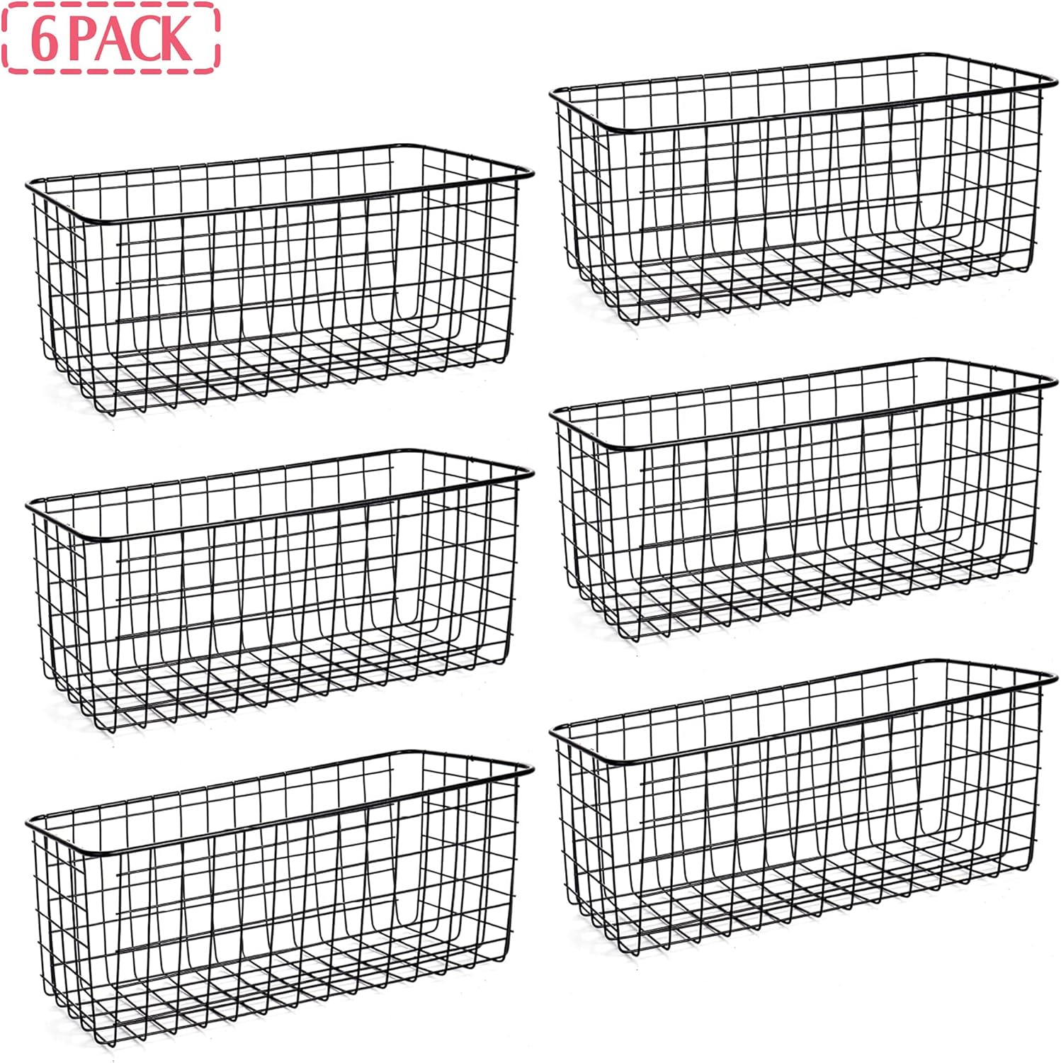 6 Pack Wire Storage Baskets Household Metal Wall-Mounted Containers Organizer Bins for Kitchen Bathroom Freezer Pantry Closet Laundry Room Cabinets Garage Shelf, Large