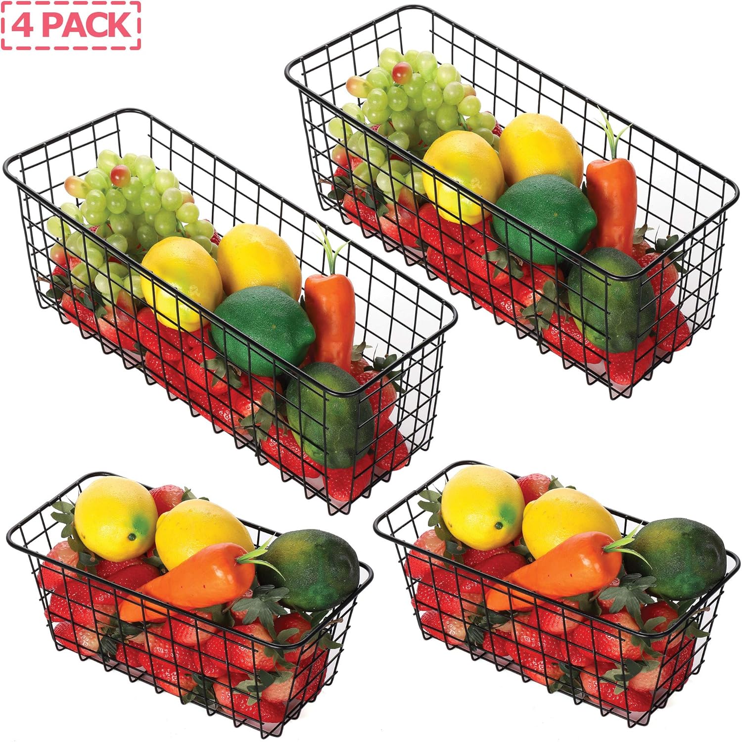 4 Pack Wire Storage Baskets Household Metal Wall-Mounted Containers Organizer Bins for Kitchen Bathroom Freezer Pantry Closet Laundry Room Cabinets Garage Shelf, 2 Large 2 Medium