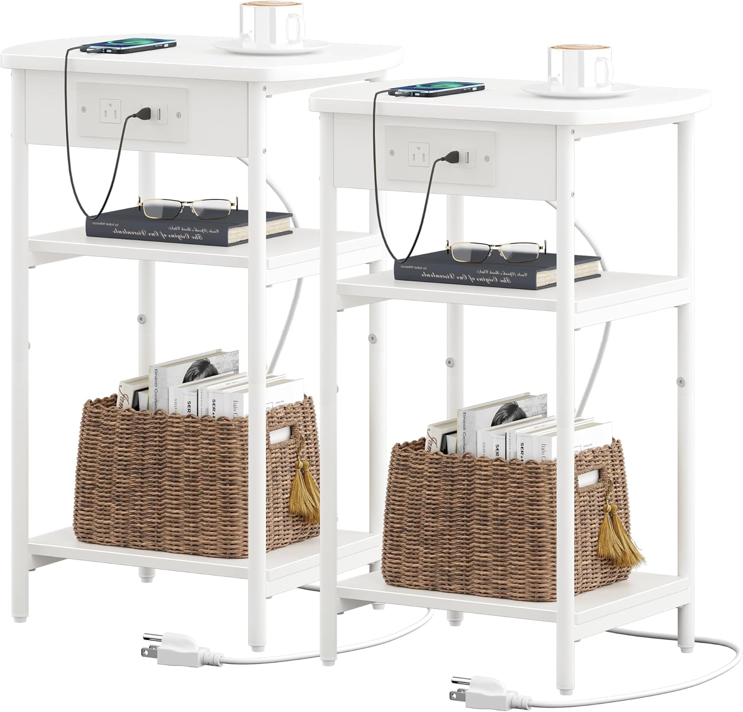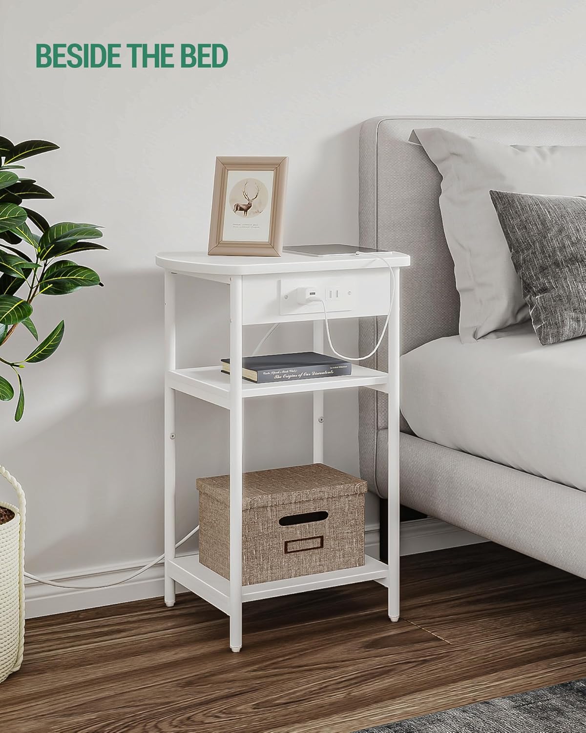 End Tables with Charging Station ET15203W, Printer Stand with Charging Station