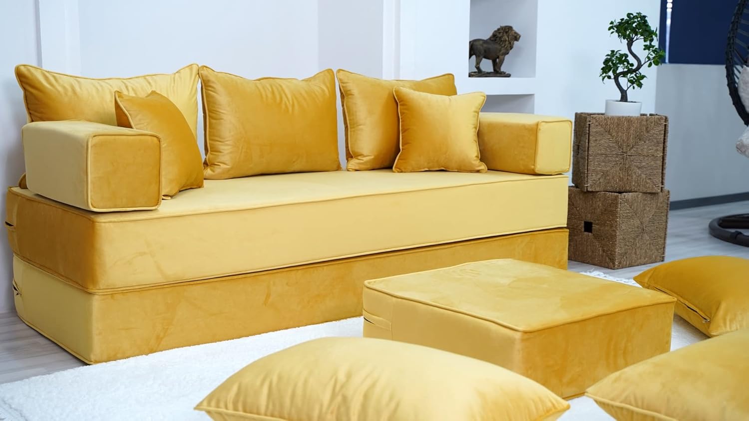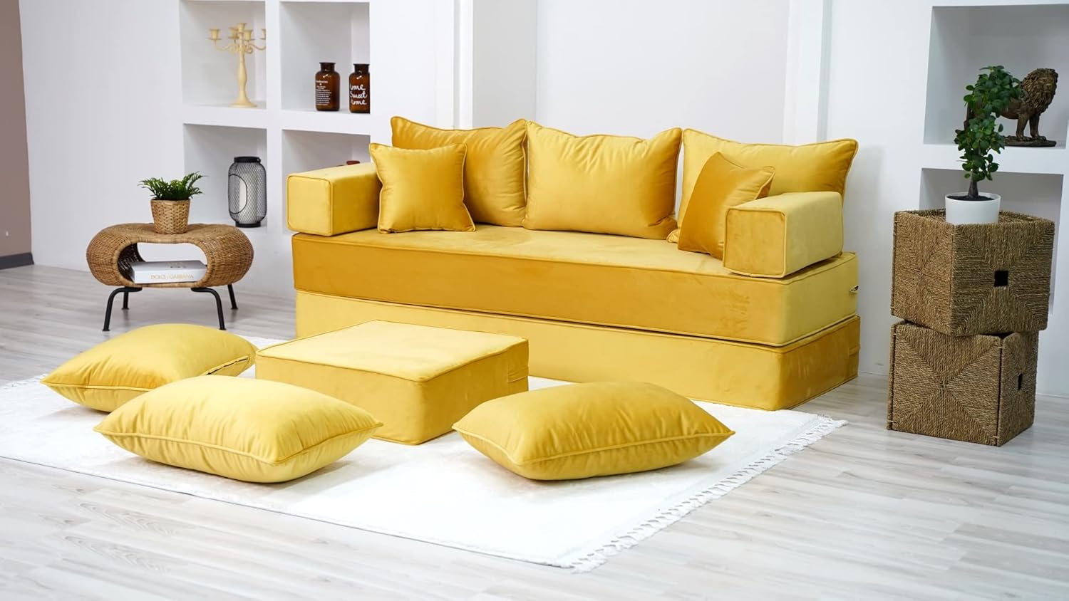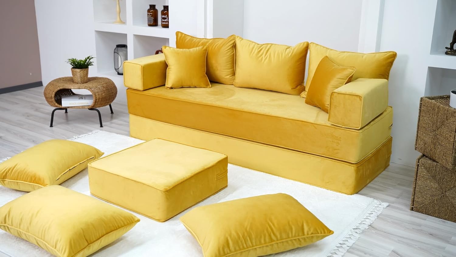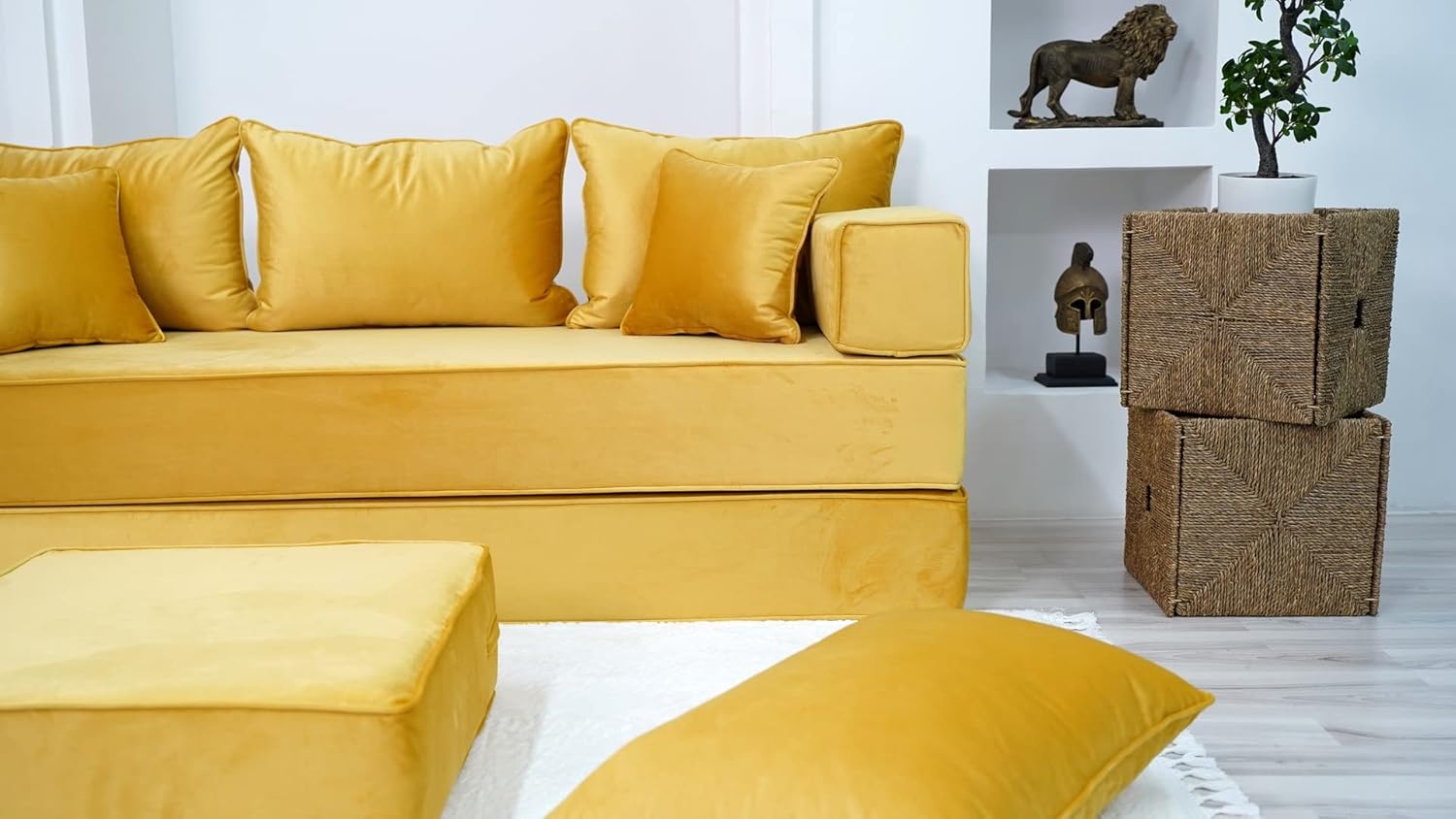 Loveseat Floor Cushions, Custom Floor Sofas, Arabic Majlis, Reading Nook, Single Sofa, Turkish Sofa, Sectional Sofa, Entryway Sofa (Yellow)