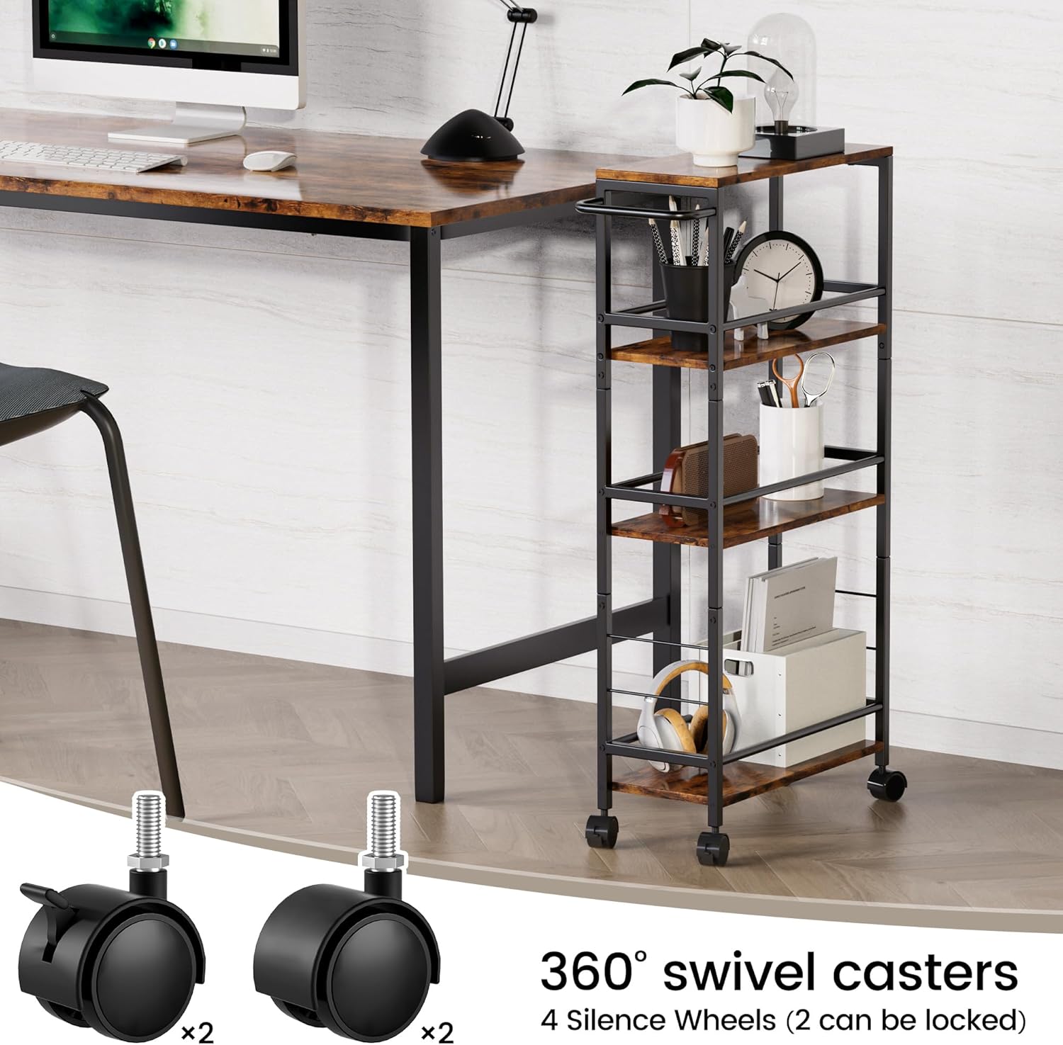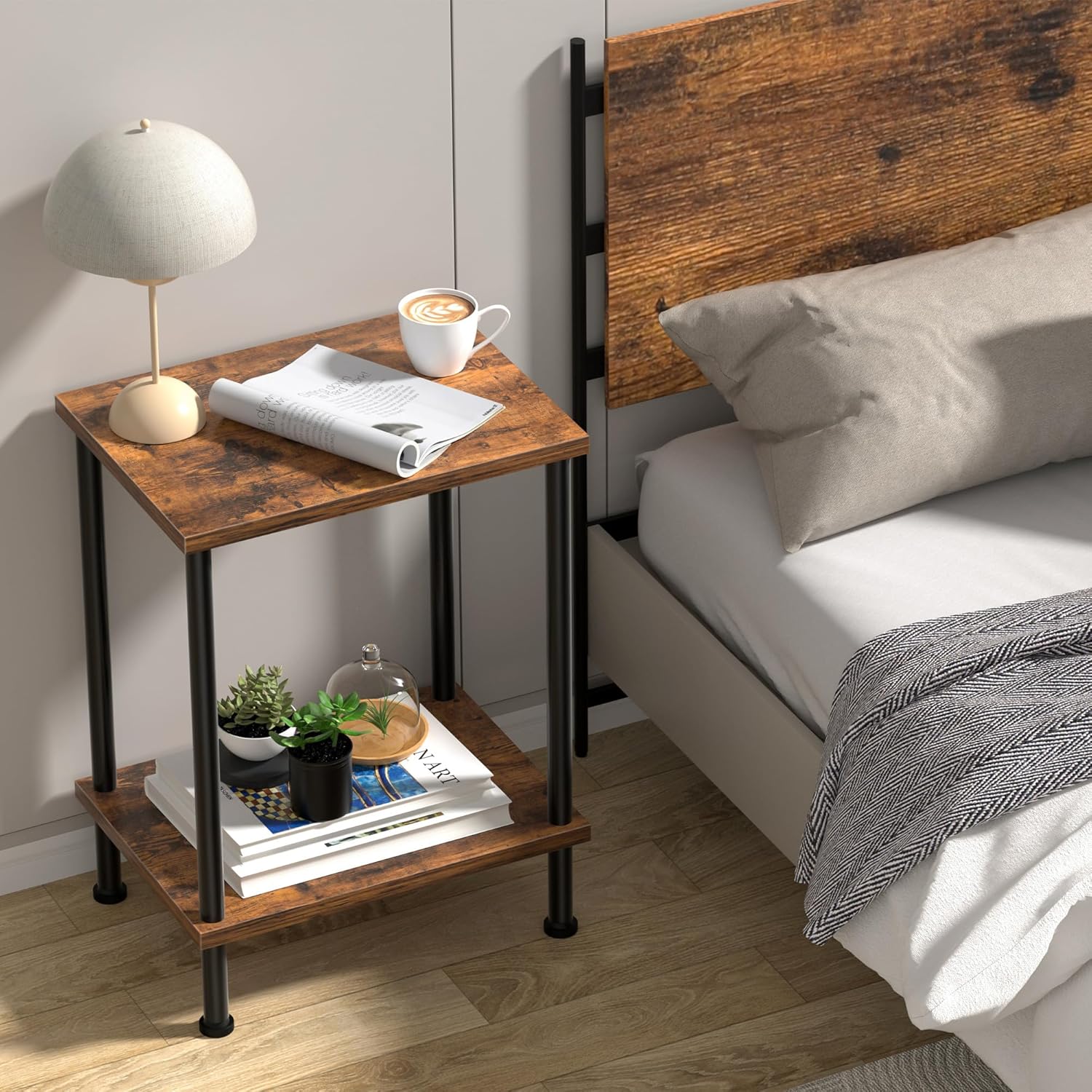 Small End Table Set of 2 for Small Space & 4-Tier Narrow Kitchen Storage Carts