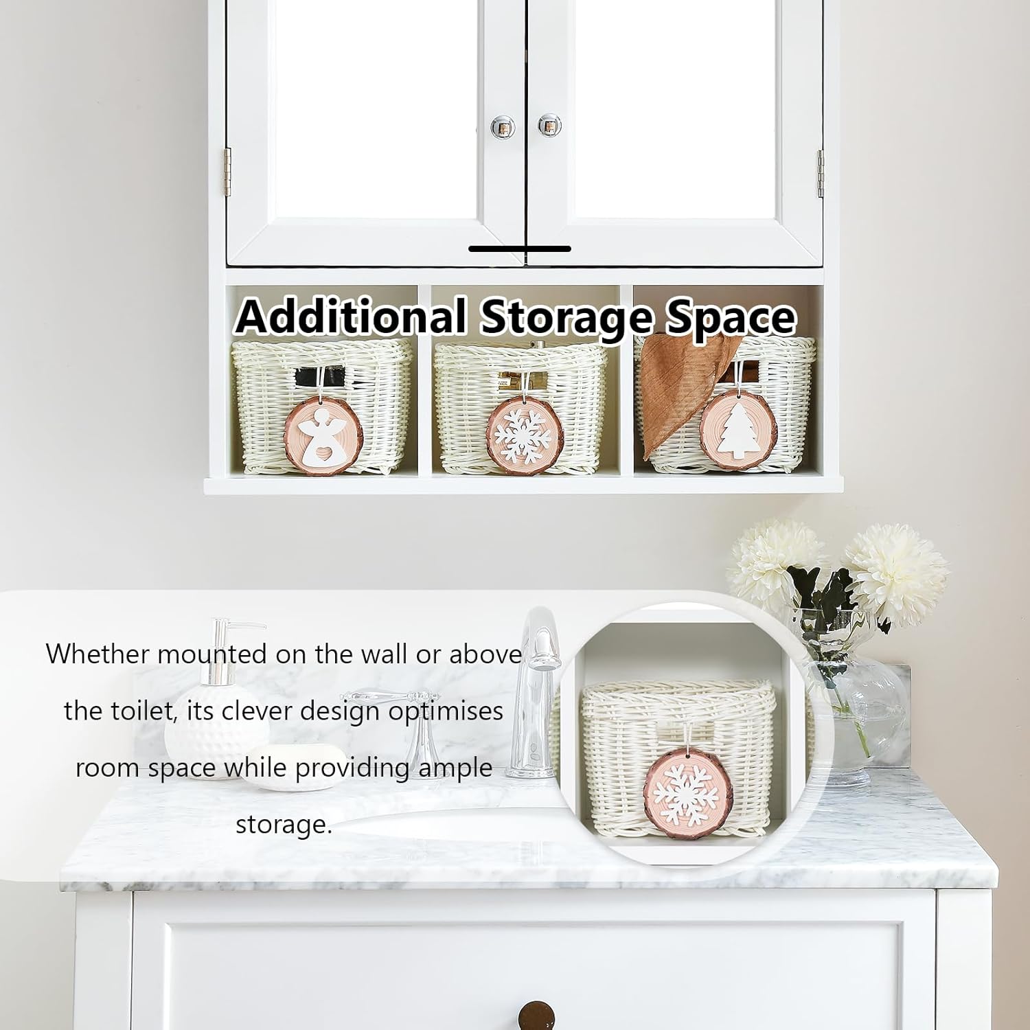 Medicine Cabinet, Bathroom Organiser, Wall Mounted Bathroom Cabinet with Mirror with 2 Adjustable Shelves and 3 Storage Baskets for Bathroom, Laundry Room, Kitchen