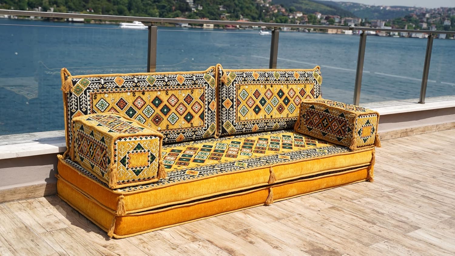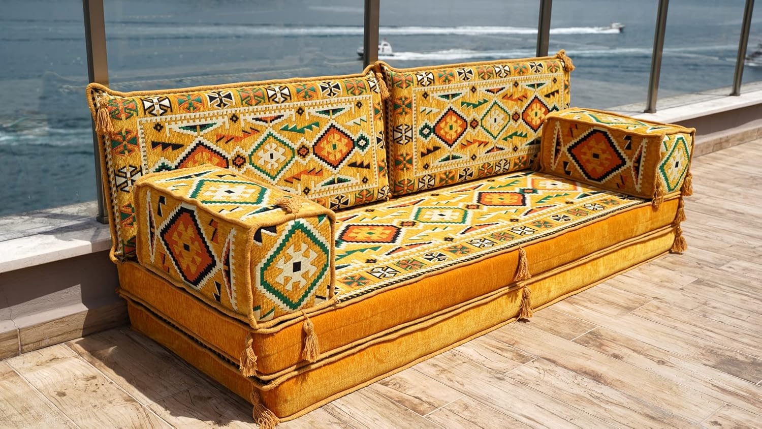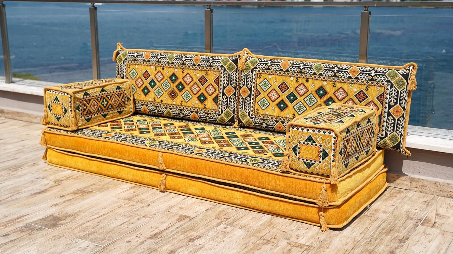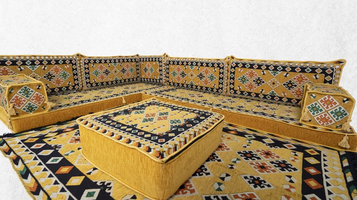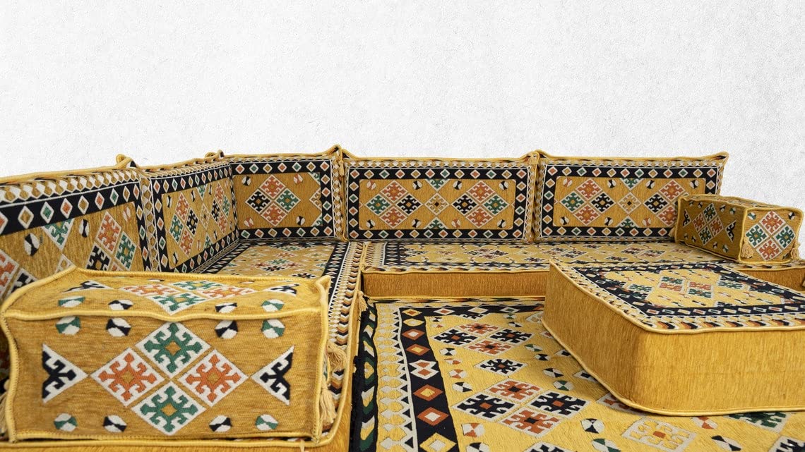 Yellow Sectional Sofa, Terrace Sofa, Floor Cushions, Arabic Majlis, Poufs, Turkish Floor Seating Set, Sofa Covers, Futon Sofa Bed (8'' Thickness Sofa)