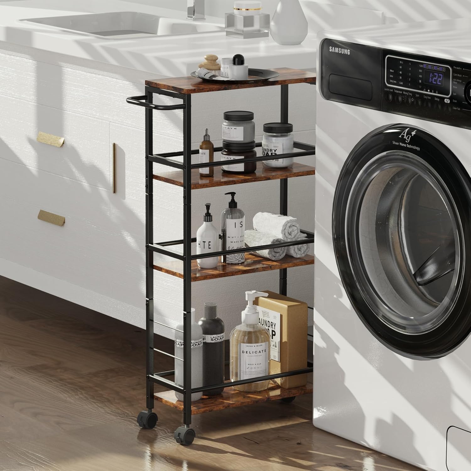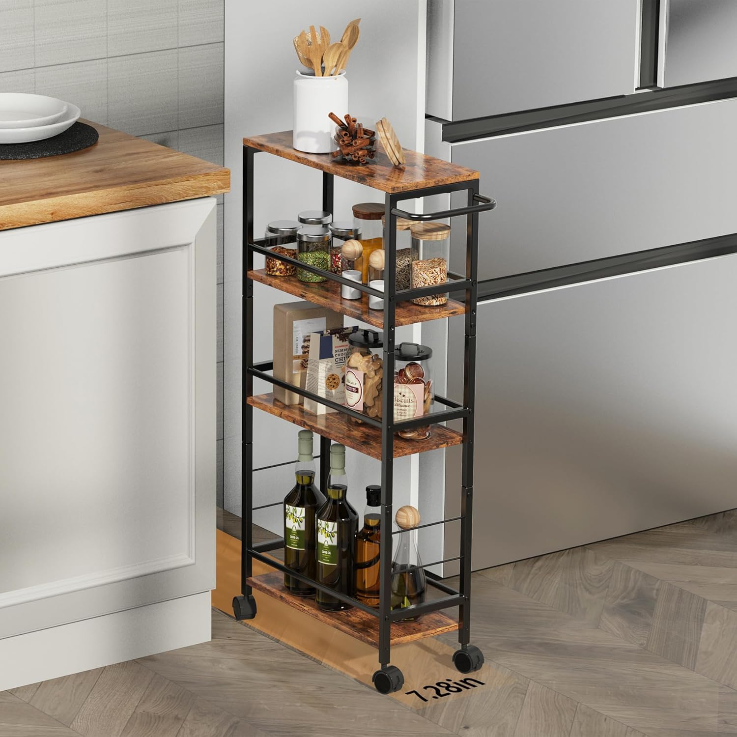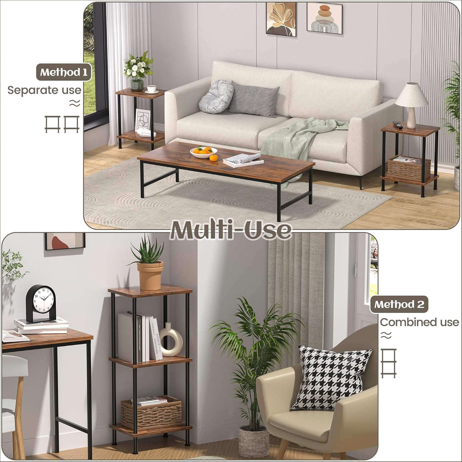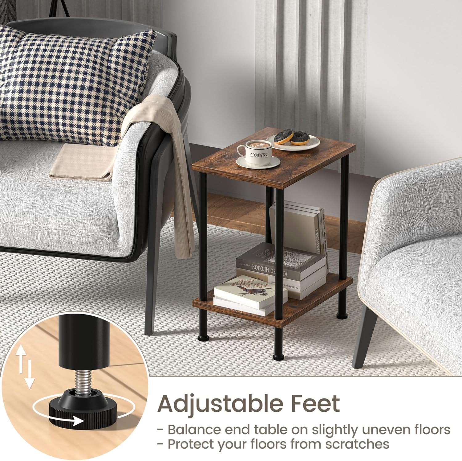 Small End Table Set of 2 & 4-Tier Narrow Kitchen Storage Carts