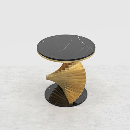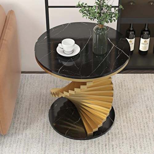 homary Round End Table Modern Metal Side Table with Marble Tabletop Small Accent Table Nightstand for Living Room Bedroom (White)