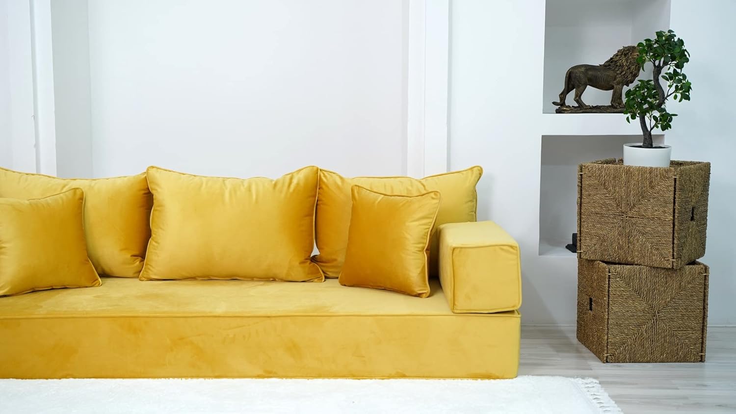 Yellow Arabic Sofa Set, Oriental Sofa, Corner Floor Sofa Seating Set, Floor Cushions, Living Room Sofa Couches, Modular Sectional Sofa
