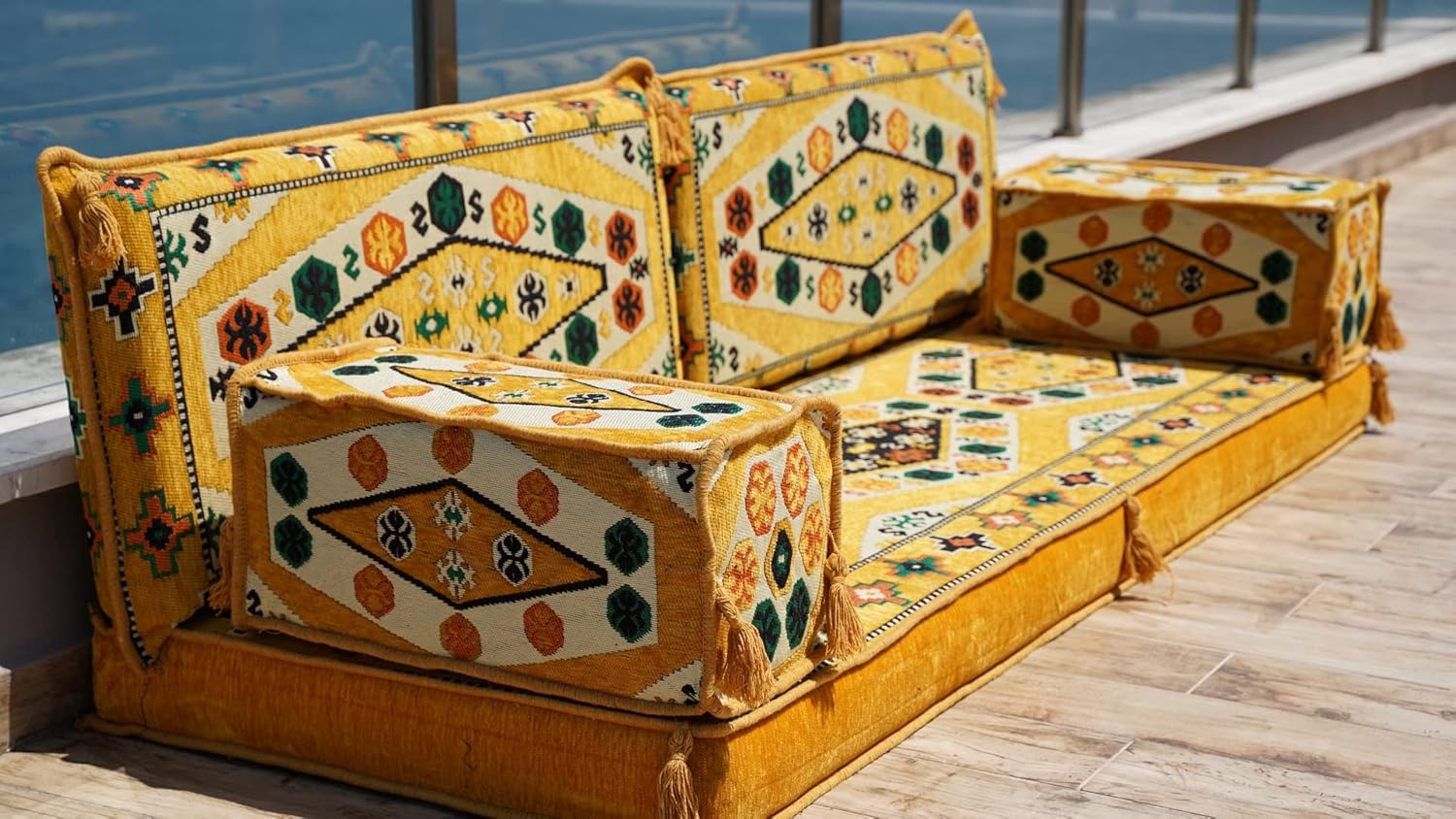 Yellow Floor Sofa Set, Floor Cushions, Balcony Patio Sofas, Pallet Sofa, Ethnic Sofa, Moroccan Sofas, Sectional Sofas, Sofa Bed (4'' Thickness Sofa)