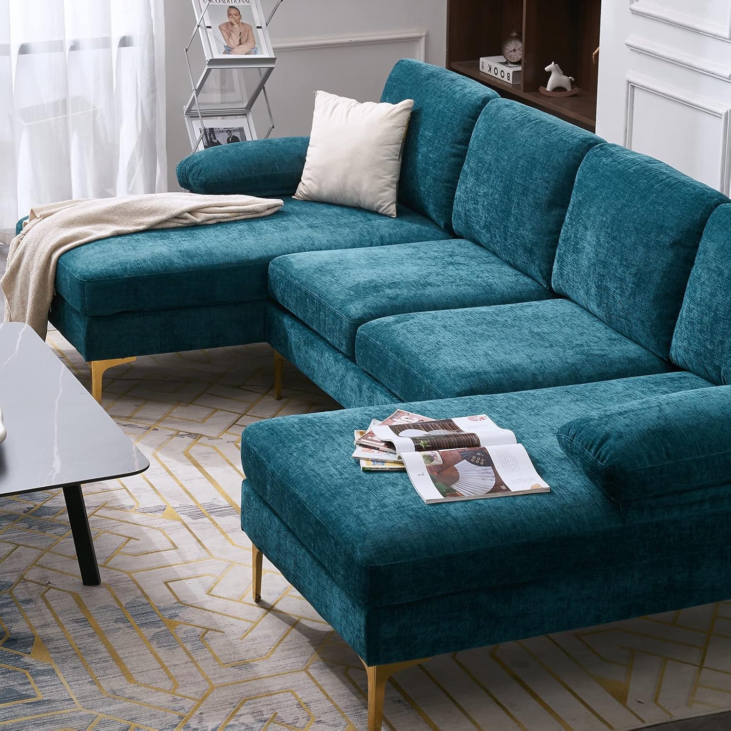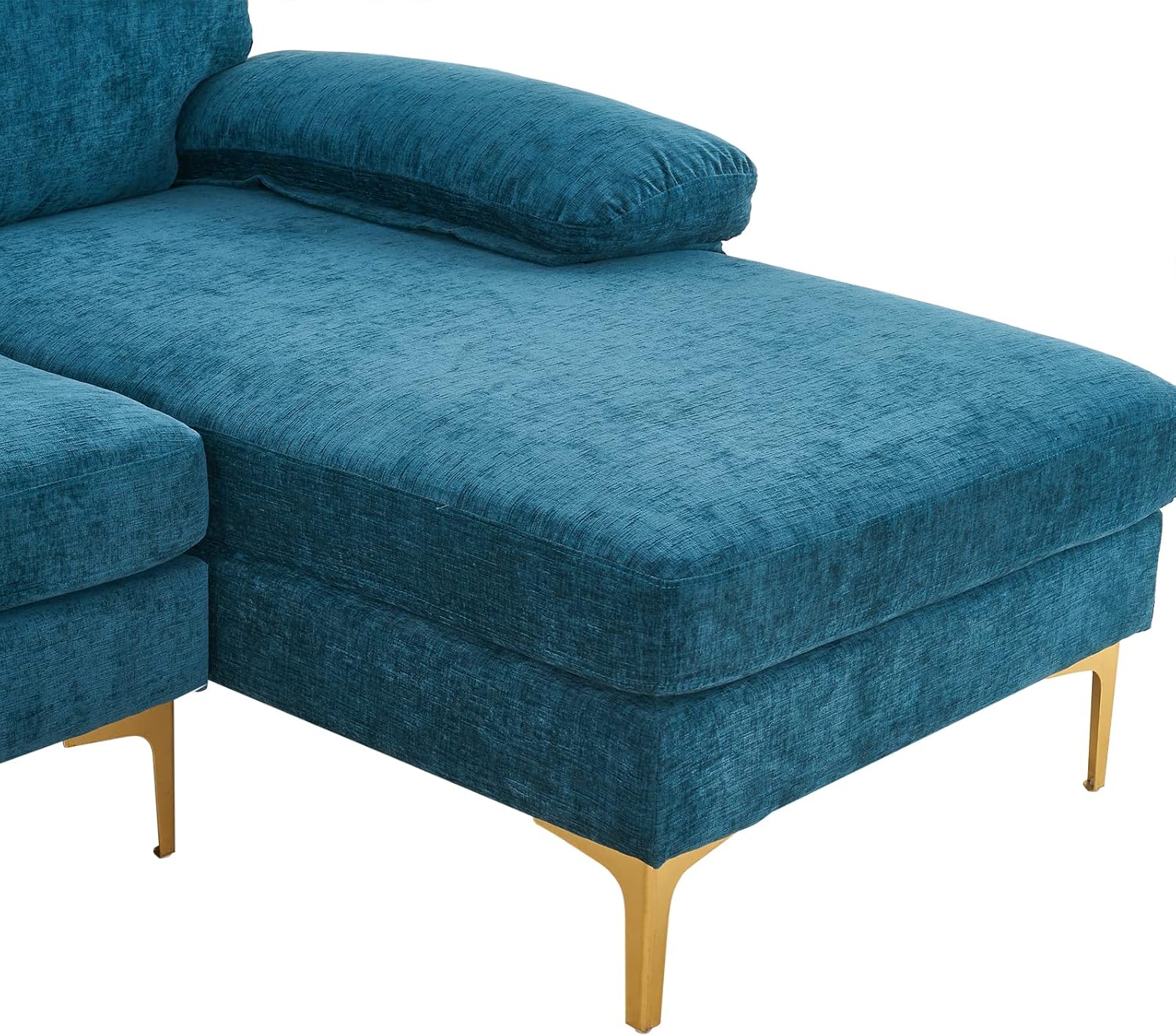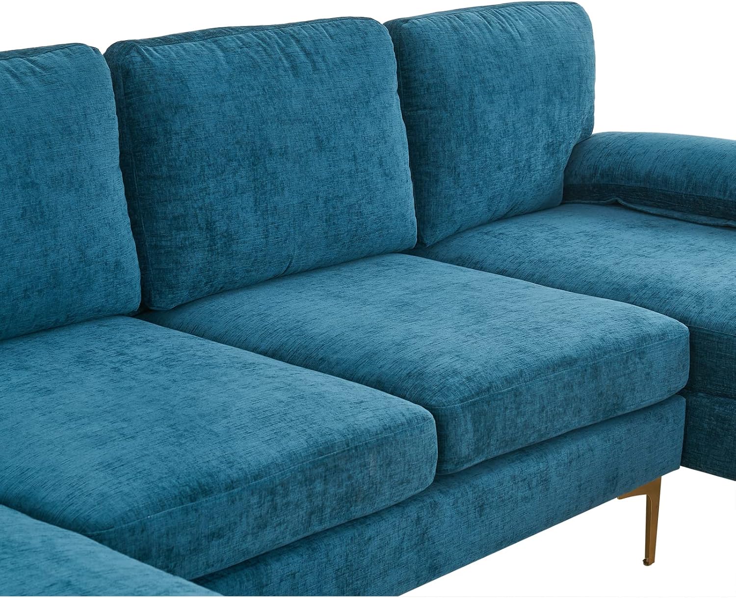 Goujxcy 113" Large Sectional Sofa Couch with Chaise, Modern 4-6 Seat U Shaped Reversible Modular Sofa with Golden Metal Legs & Armrest Sofa for Living Room, Apartment and Office,Teal