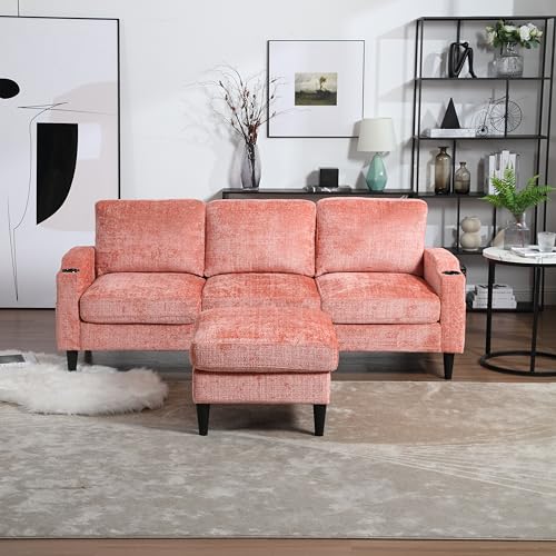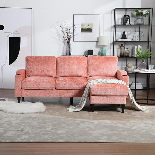 77" Convertible Sectional Sofa Couch with Storage Ottoman, 3 Seat L Shaped Sofa with 2 Cup Holders,Modern Linen Fabric Couches for Living Room, Apartment, Office(Teal)