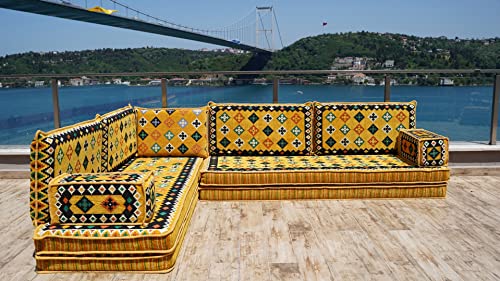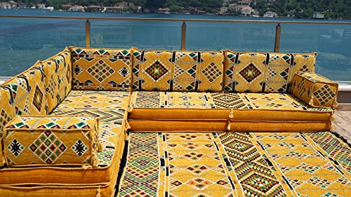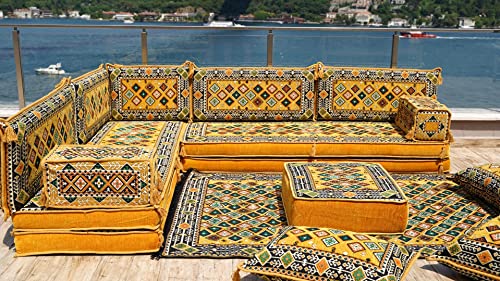 8 Thickness Floor Cushions, Turkuoise Floor Couches, Arabic Majlis, Arabic Floor Sofa Seating, Pallet Sofa, Sectional Sofa, Bench Cushions (Yellow)