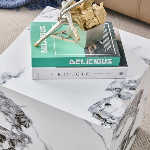 Coffee Table,Marble End Table,Square Faux Marble Side Table,White Marble Sofa Table,Modern Luxury End Sofa Table,Marble Coffee Table End Table Simple Center Table for Living Room,Bedroom,Office