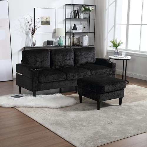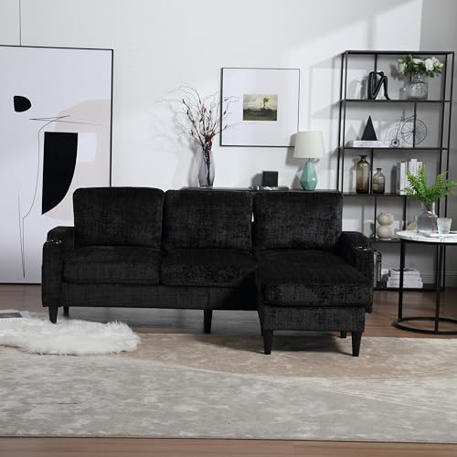 77'' Convertible Sectional Sofa Couch, L Shaped Couch 3 Seat Sofa Sectional with Reversible Storage Ottoman Bench & Cup Holder, Couches for Living Room, Apartment, Office, Small Space, Teal