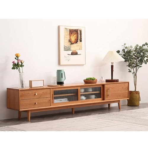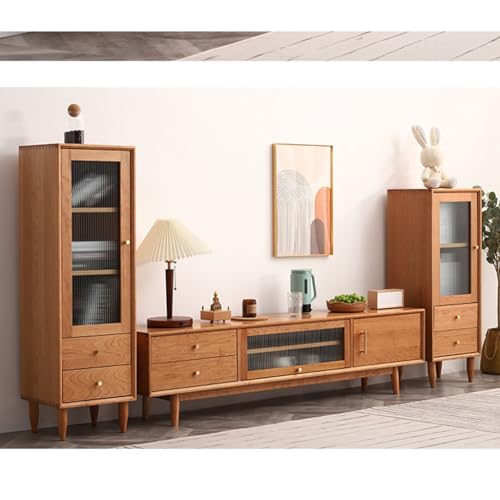 Tv Stand Tv Table Stand Cherry Wood Solid Wood TV Cabinet Glass Door Audio-visual Cabinet Storage Living Room Entertainment Center Sideboard Tv Stands for Living Room(180 * 35 * 45cm)