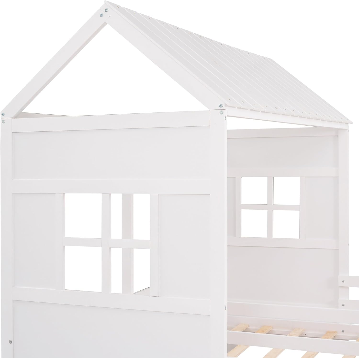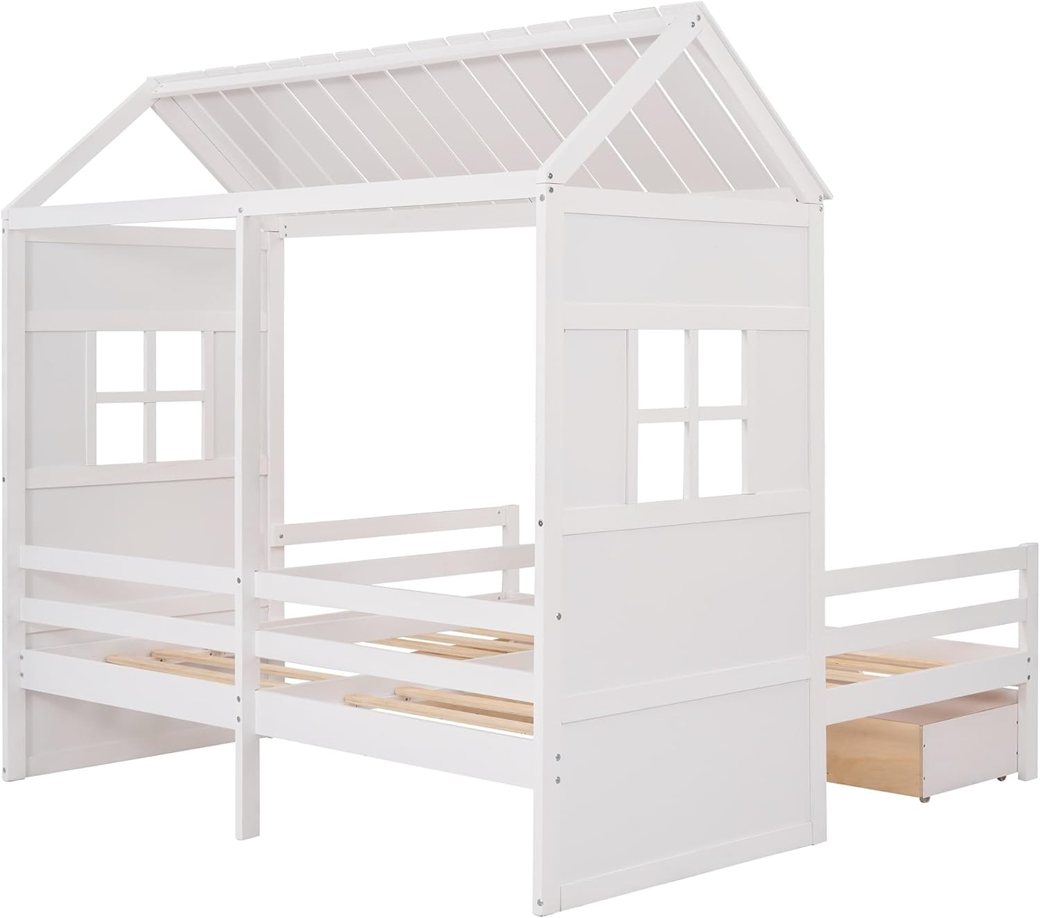 Twin House Bed with 2 Drawers White Modern Contemporary Wood
