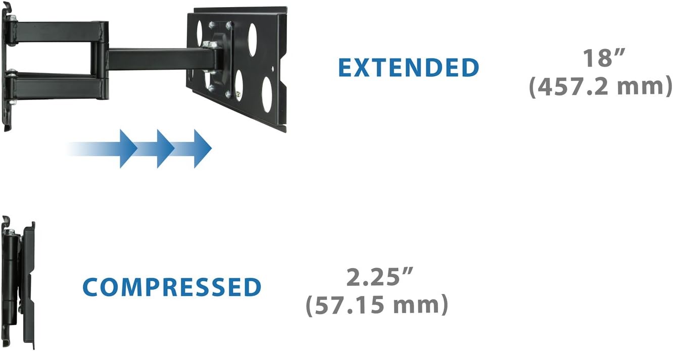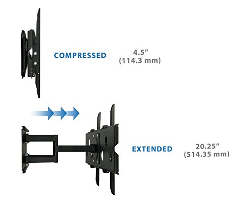 Mount-It! Heavy Duty Full Motion TV Wall Mount for 16’’, 18’’, 24’’ Wood Studs, Fits 32-65 Inches LCD LED Plasma Flat Screen Curved TVs up to 165 lbs