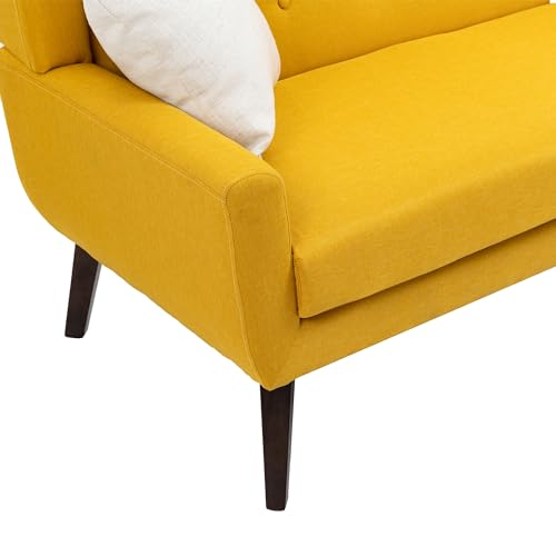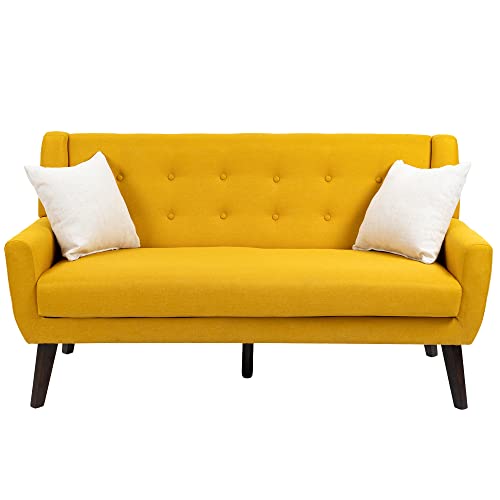 UIXE 63" W Loveseat Sofa, Modern Upholstered Love Seat 2-Seater Couches for Living Room, Mid-Century Button Tufted Armrest Couch Comfy Solid Wood Furniture for Small Space, Bedroom (Teal Blue)