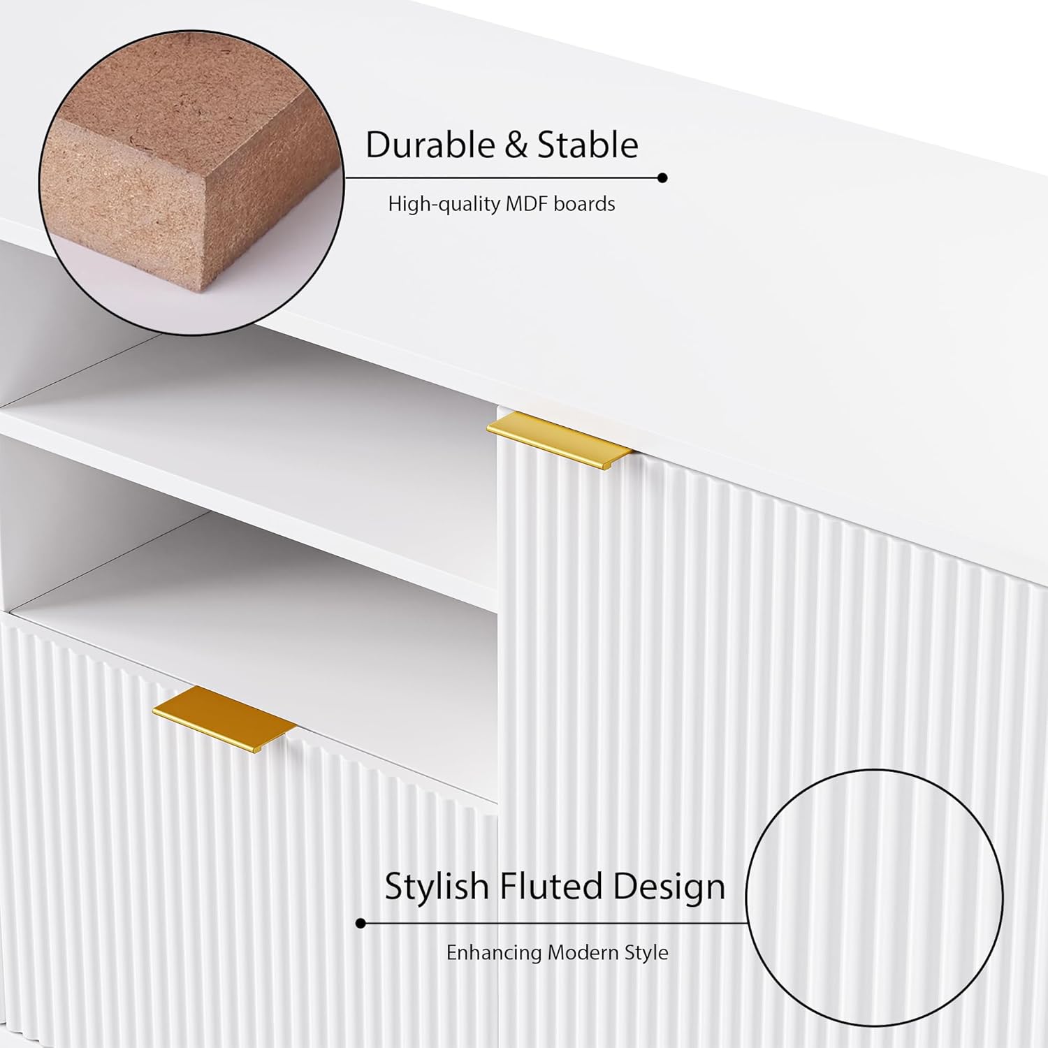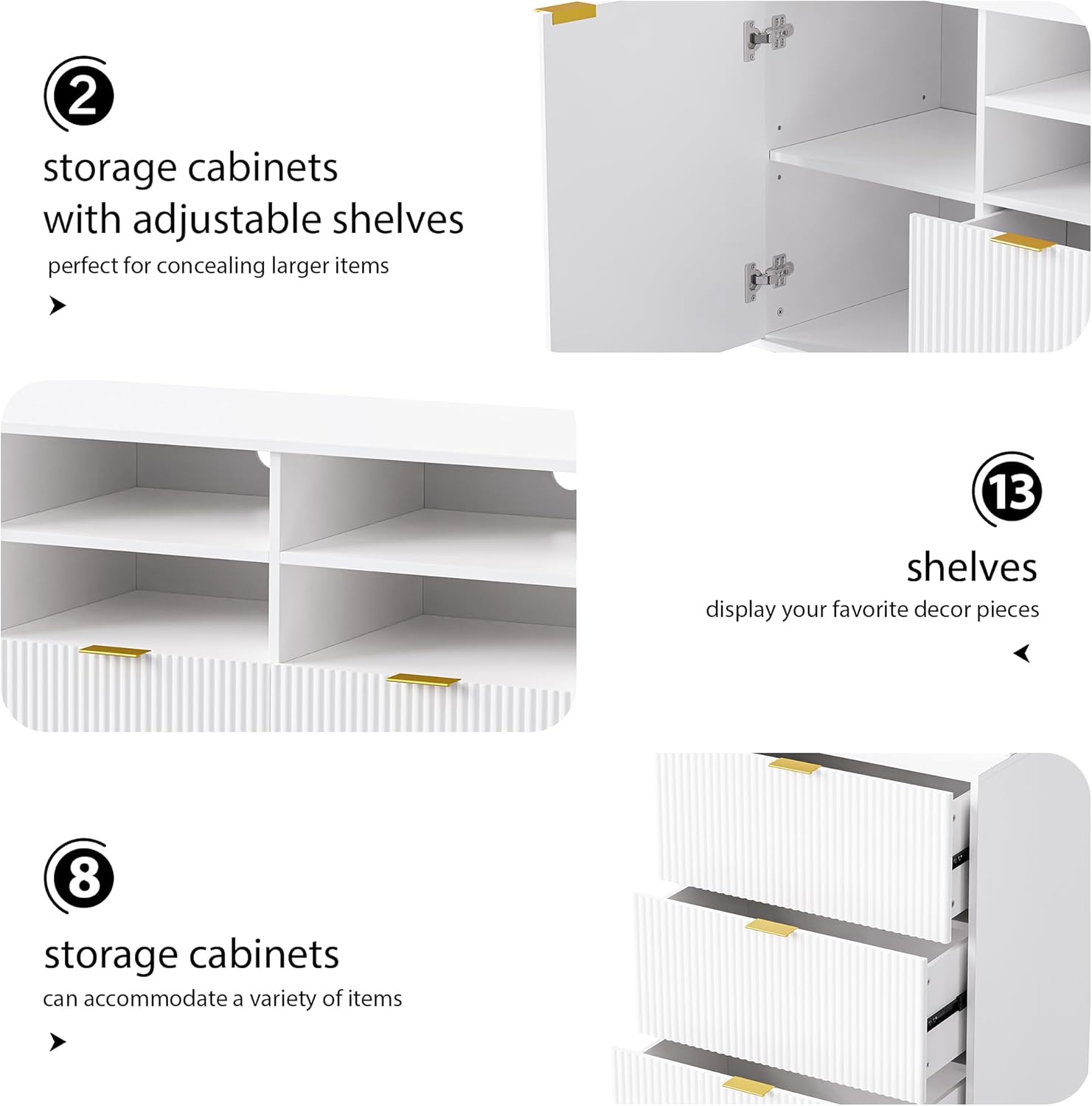 TV Stand with Fluted Line Surface, 4-Piece Entertainment Wall Unit with 13 shelves, 8 Drawers and 2 Cabinets, Modern TV Stand for Living Room, White