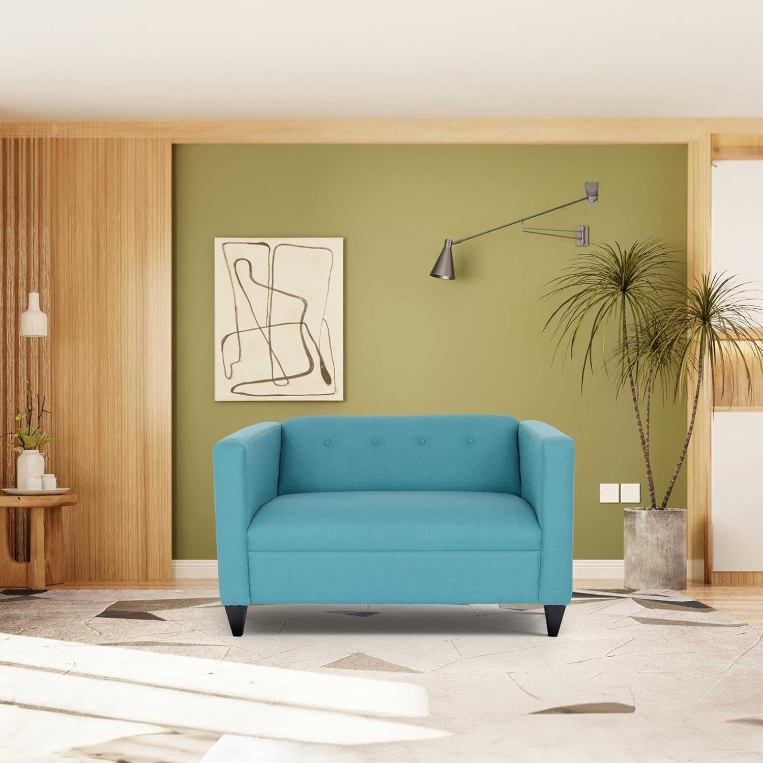 Broadway Teal Loveseat Sofa, Polyester Nylon Upholstery, Mid-Century Modern Design, Solid Wood Frame, Ideal for Small Spaces, Easy Assembly, Made in USA