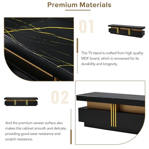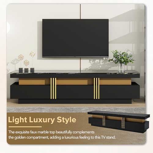 TV Stand for Up to 80 Inch TV, Entertainment Center with 3 Cabinets & Open Shelves and Drop Down Door, Modern Media TV Console Table for Living Room, Bedroom, Wood+Dark Grey