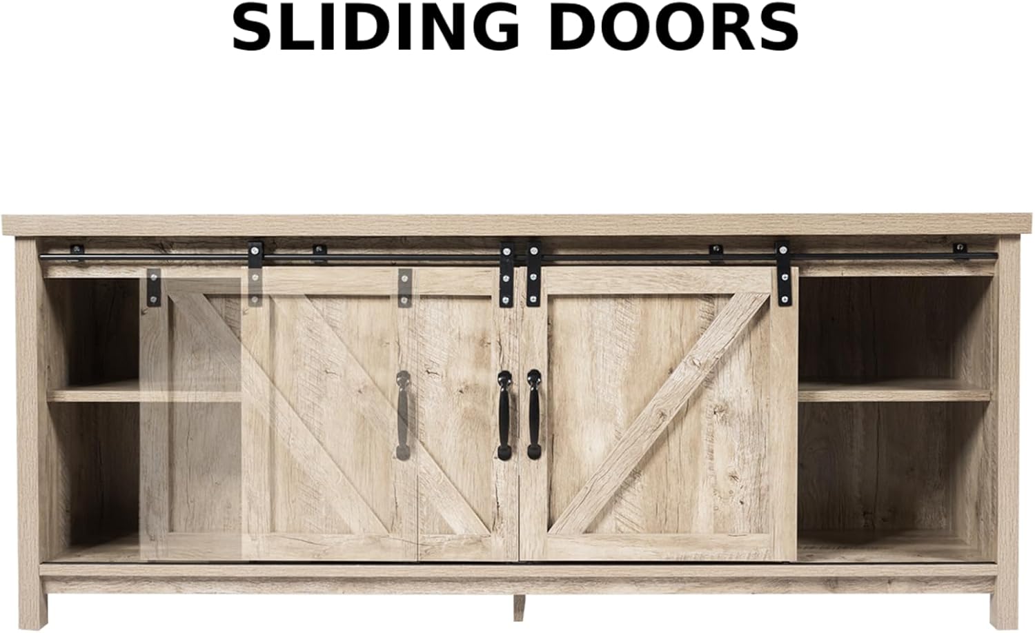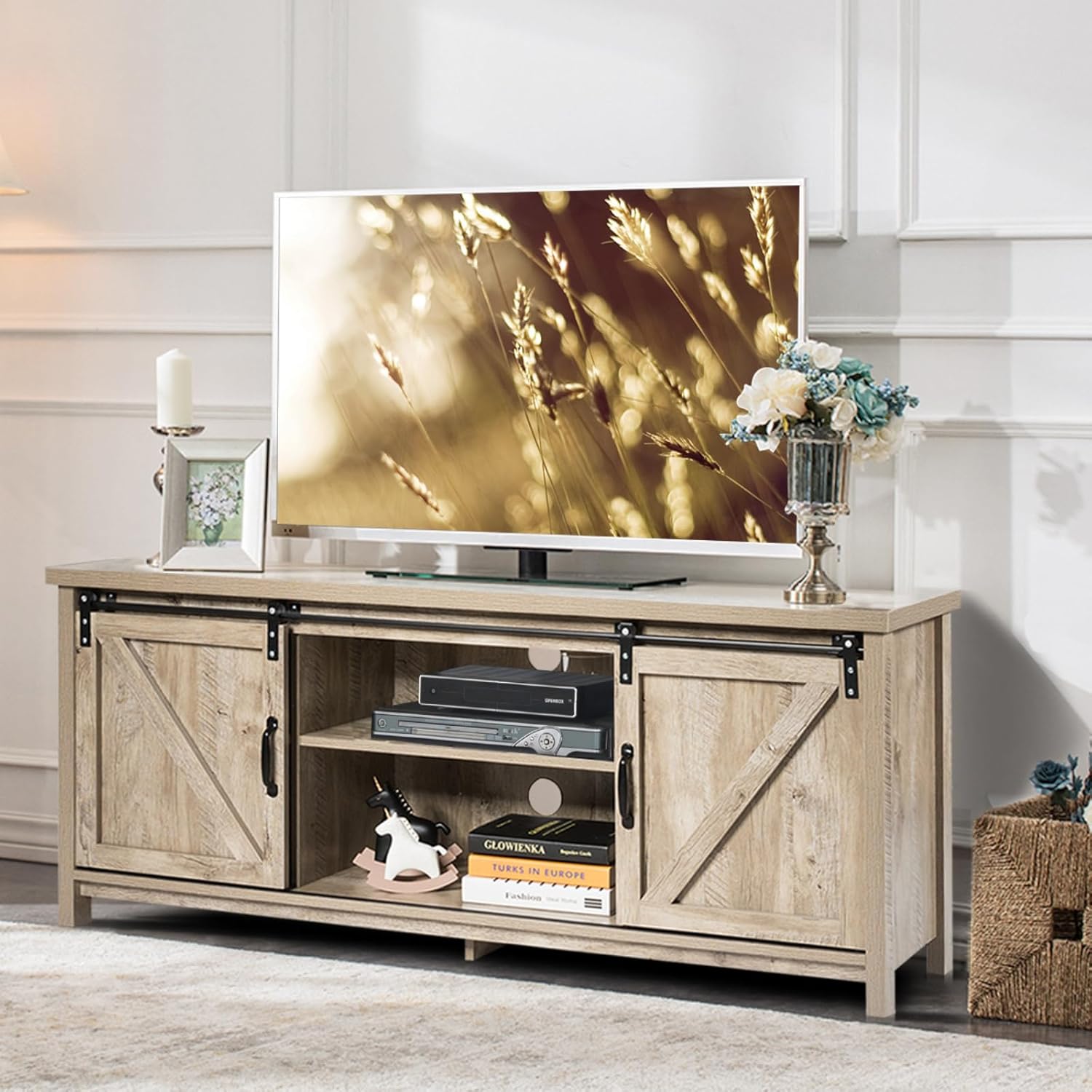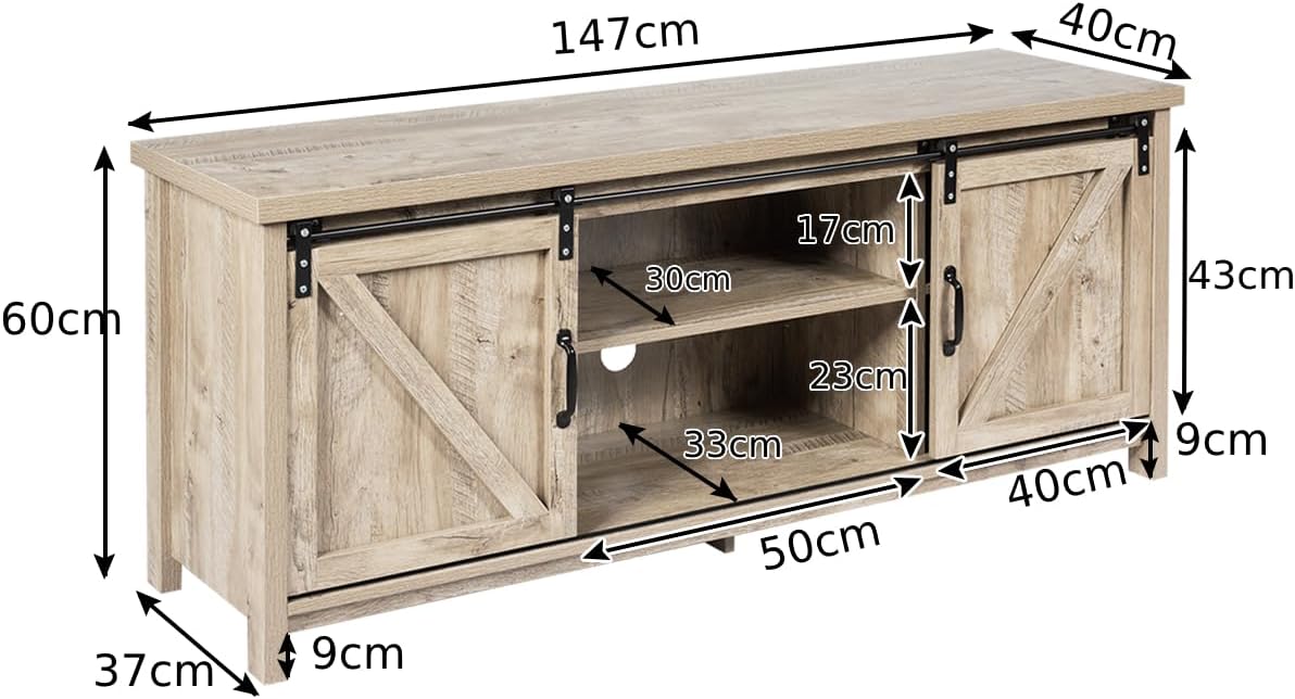 CASART Wooden TV Cabinet, 3 Tier TV Console Table with Sliding Barn Doors and Shelves, Rustic Media Entertainment Center for Living Room Bedroom Office (Grey Wash), 147 x 40 x 60cm, CAHW61826