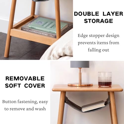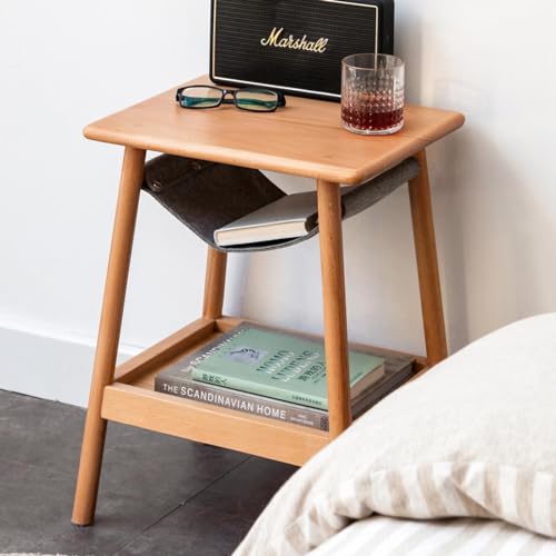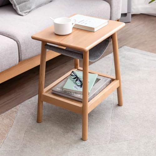 End Table - 100% Solid Oak Wood Side Table with Fabric Pocket - Small Coffee Table for Living Room (Walnut Color)