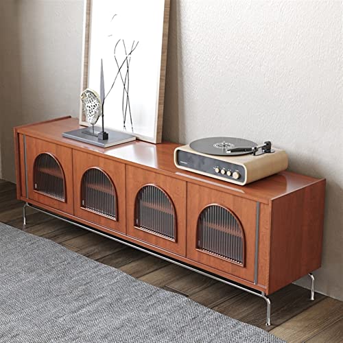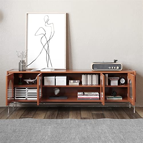 LUNIZ Modern TV Stand Stainless Steel Legs Retro TV Stand Home Entertainment Center Media Console with Arched Glass Door Storage Cabinet Storage Cabinets(180 * 40 * 63CM)
