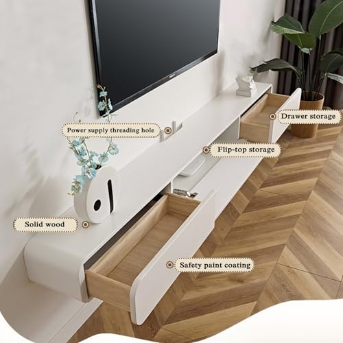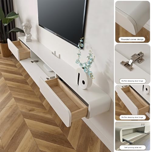 Floating TV Stand, Glossy Wall Mounted TV Shelf, Modern Entertainment Center with Storage TV Cabinet Media Console Table for Living Room(White+Gold,240CM)